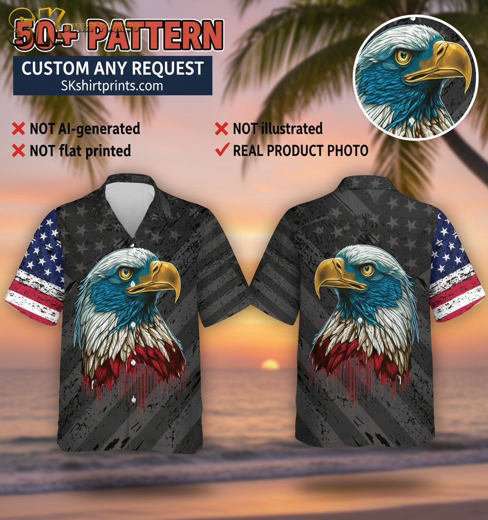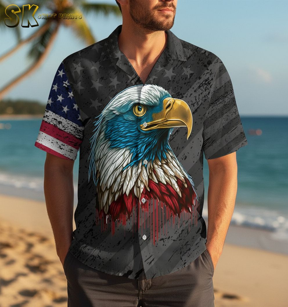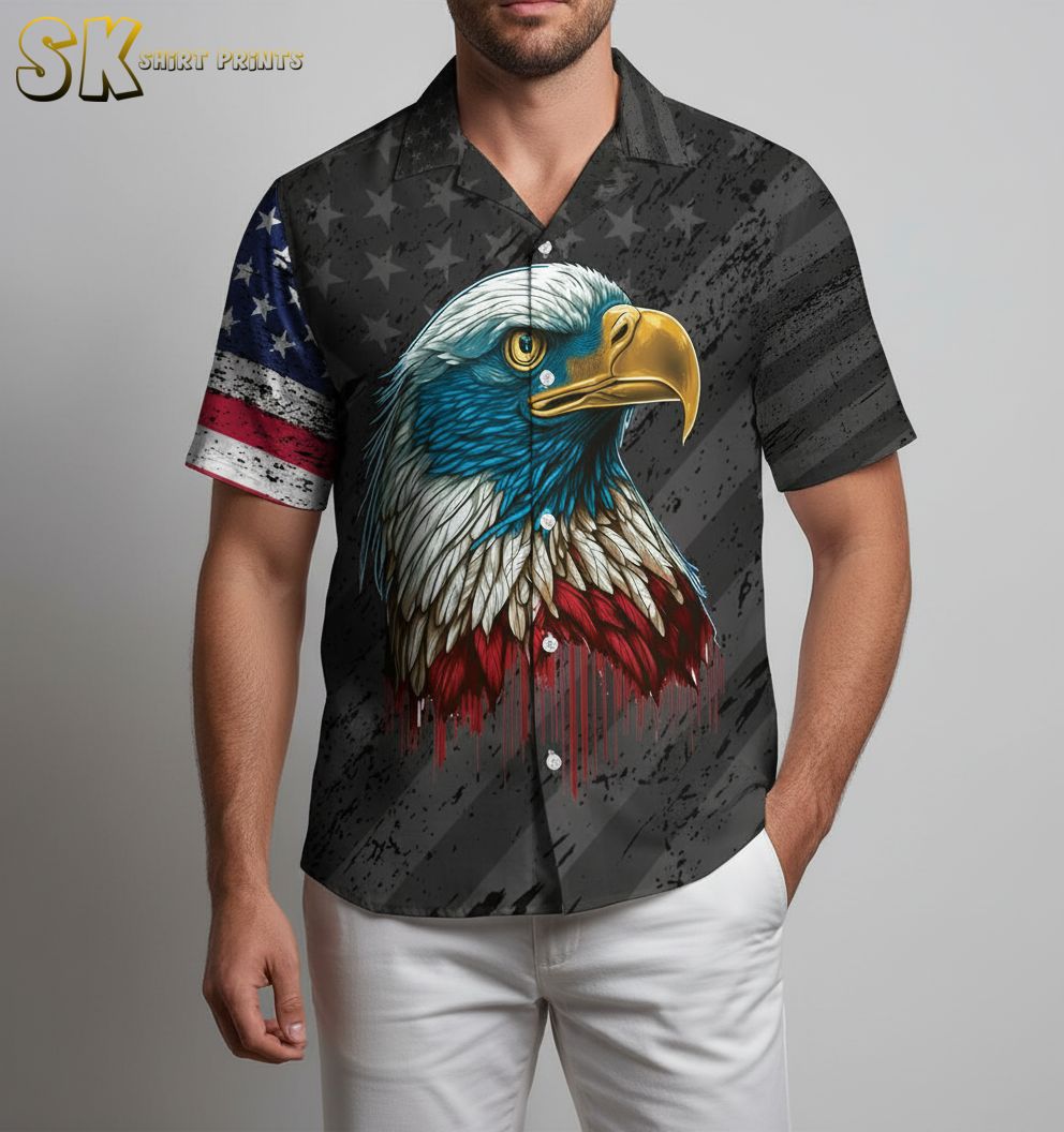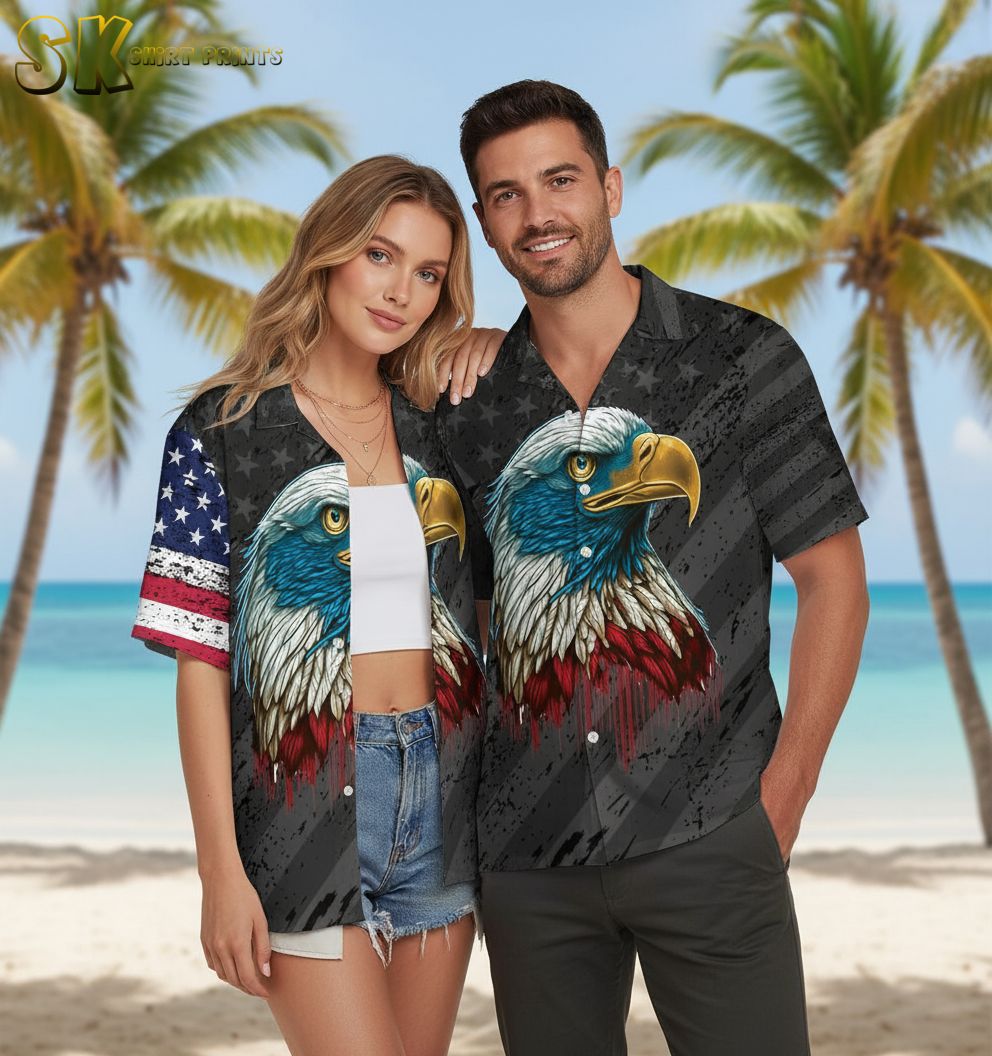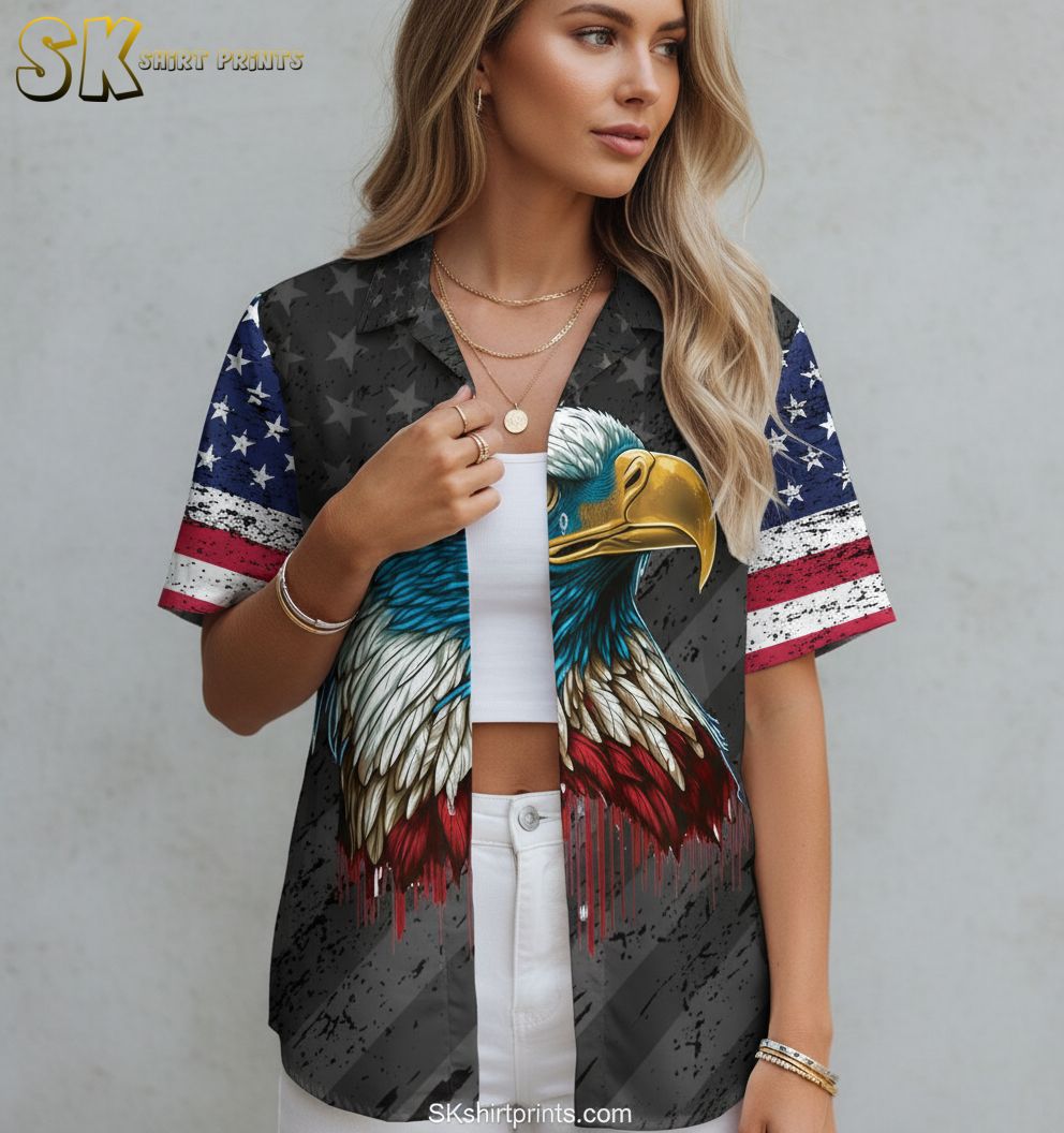 Bald Eagle Hawaiian Shirt for Men Women – American Pride Beach Vacation Shirt Short Sleeve Button Down
