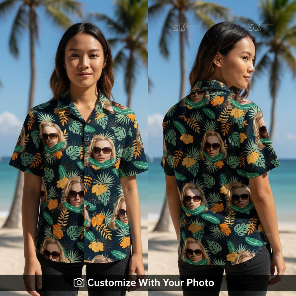 Black Hawaiian Shirt Women Plus Size Custom Photo Tropical Design