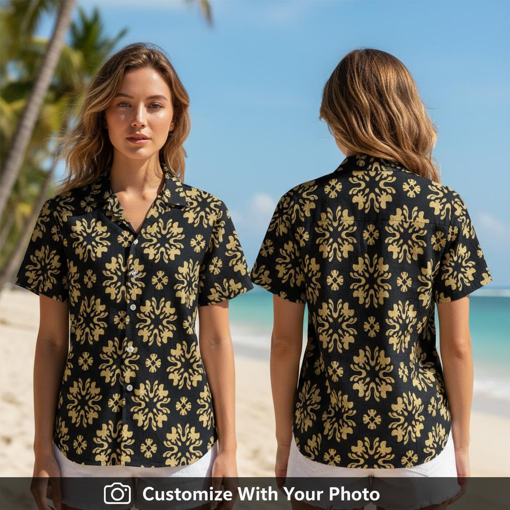Black Yellow Vintage Hawaiian Shirts with Custom Photo Print - Classic Aloha