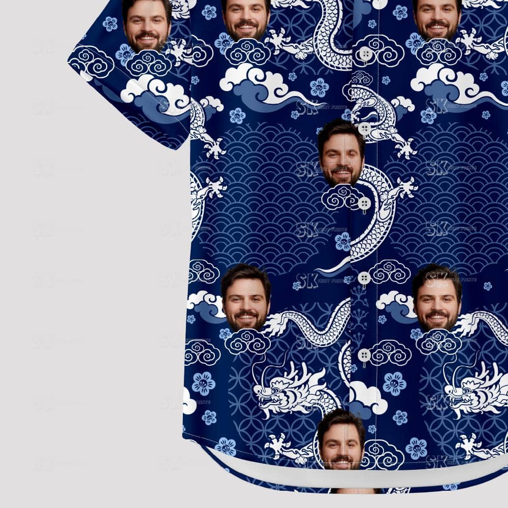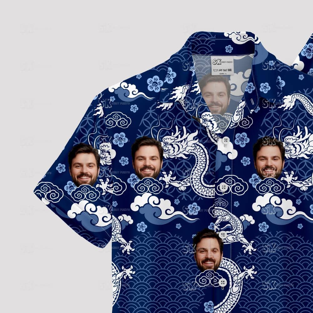 Blue Aloha Shirt | Personalized Hawaiian Shirts | Hawaiian Shirt With Face | Custom Hawaiian Shirts | Dragon hawaiian shirt | Hawaiian Shirts For Men
