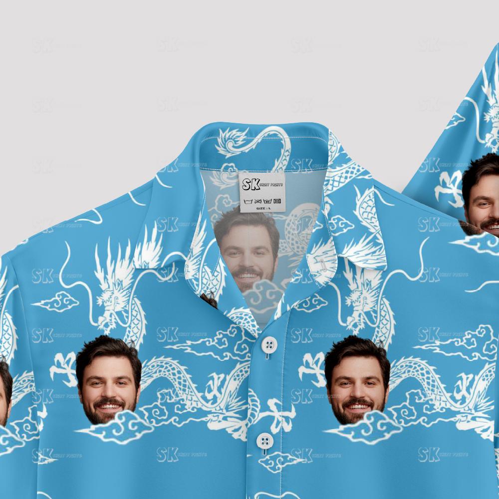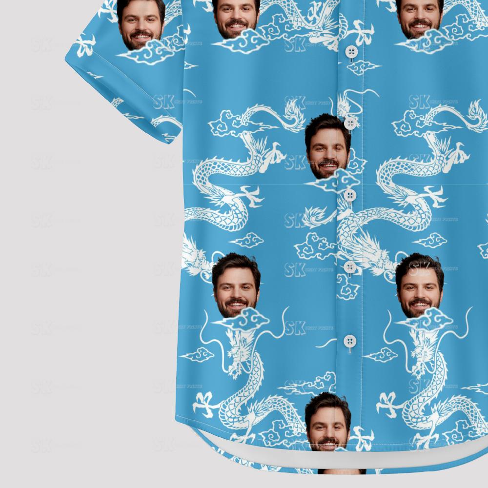Blue Hawaiian Shirt | Personalized Hawaiian Shirts | Hawaiian Shirt With Face | Custom Hawaiian Shirts | Dragon Hawaiian Shirt | Hawaiian Shirts For Men