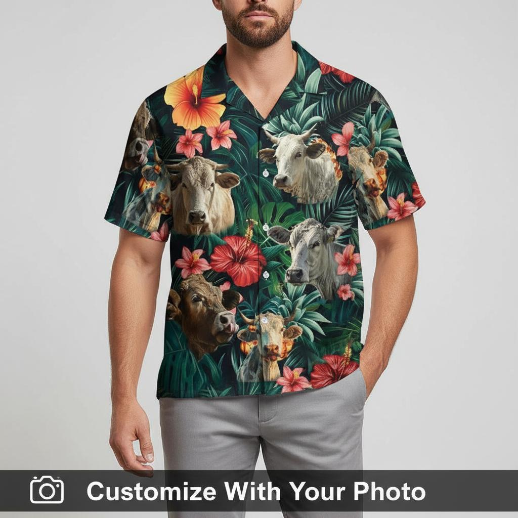 Cow Hawaiian Shirt — Custom Photo + Cute Cows — Farm Animal Aloha Shirt