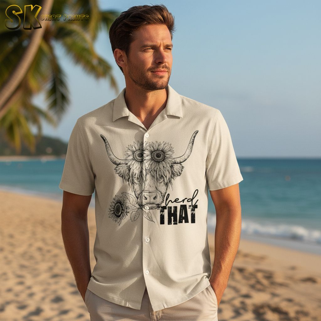 Cow Shirt Designs Hawaiian Shirt – Tropical Cow Print Button Up for Beach Vacation and Summer Adventures