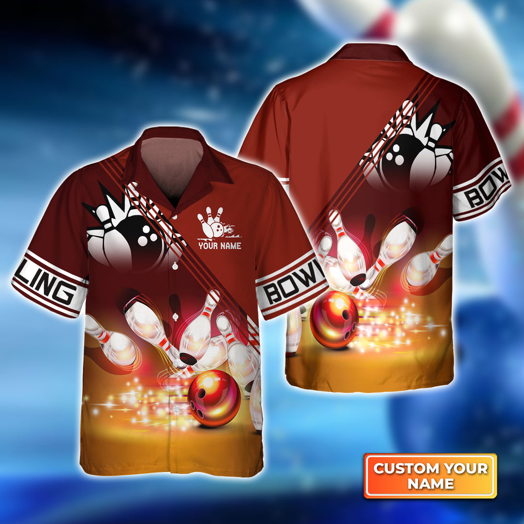 Custom Bowling Shirt with Personalized Name – Dynamic Strike Design Hawaiian Style