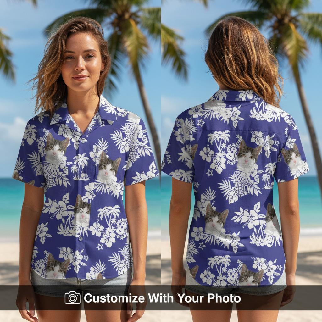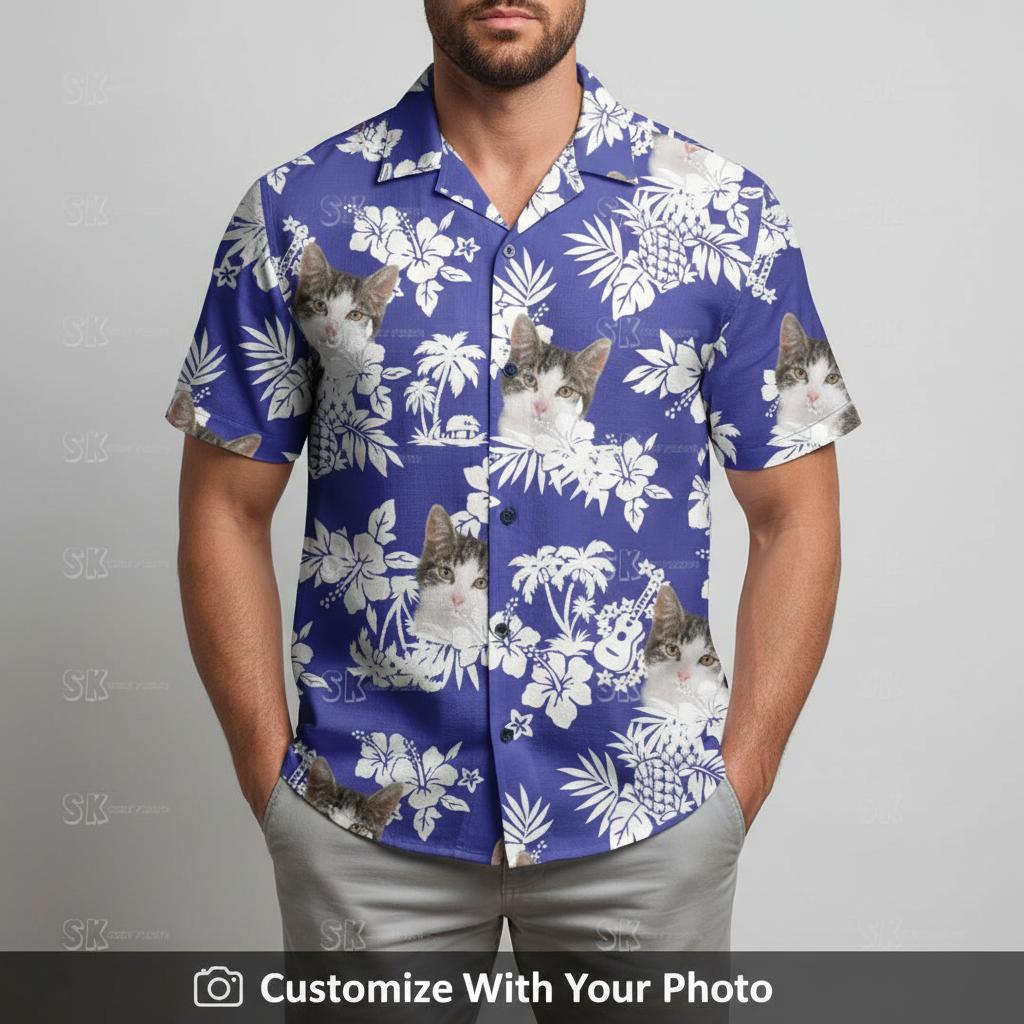 Custom Cat Face Hawaiian Shirt - Your Cat's Photo Summer Shirt for Cat Owners