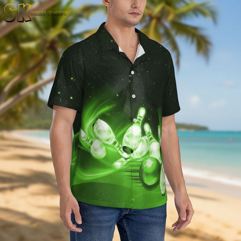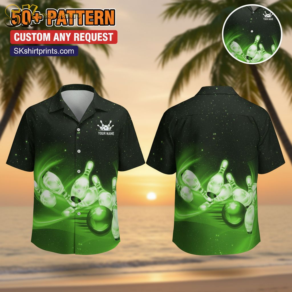 Custom Hawaiian Bowling Shirts for Men Personalized Team Logo Button Down Short Sleeve Tropical Bowling Shirt