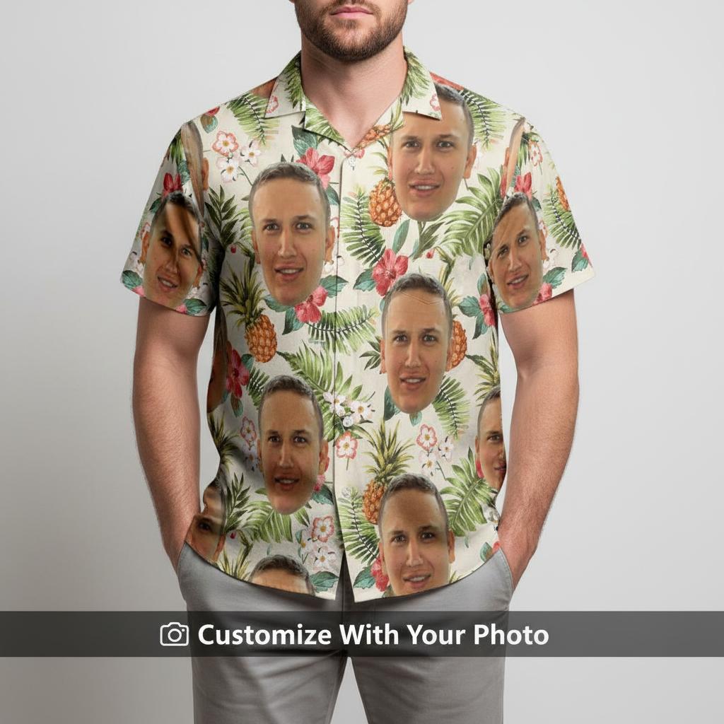 Custom Face Hawaiian Shirt - Aloha Print with Your Photo on Tropical Flowers