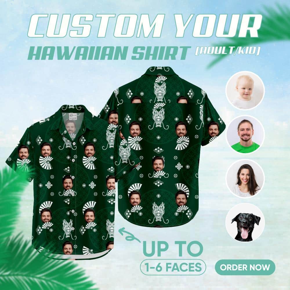 Custom Hawaiian shirts with dragons and your face make every event special. Every shirt is personalized, fun, and full of life. Celebrate your bold side, and turn any occasion into a party.