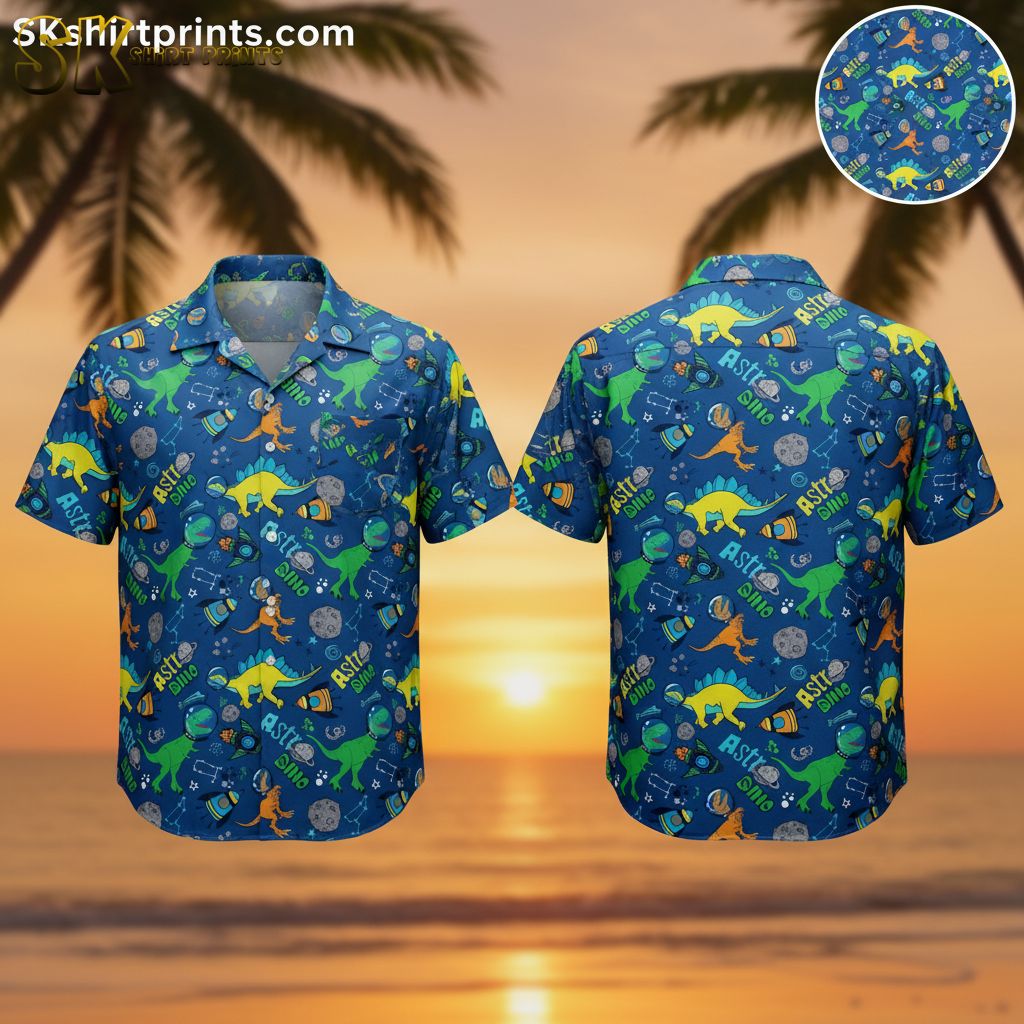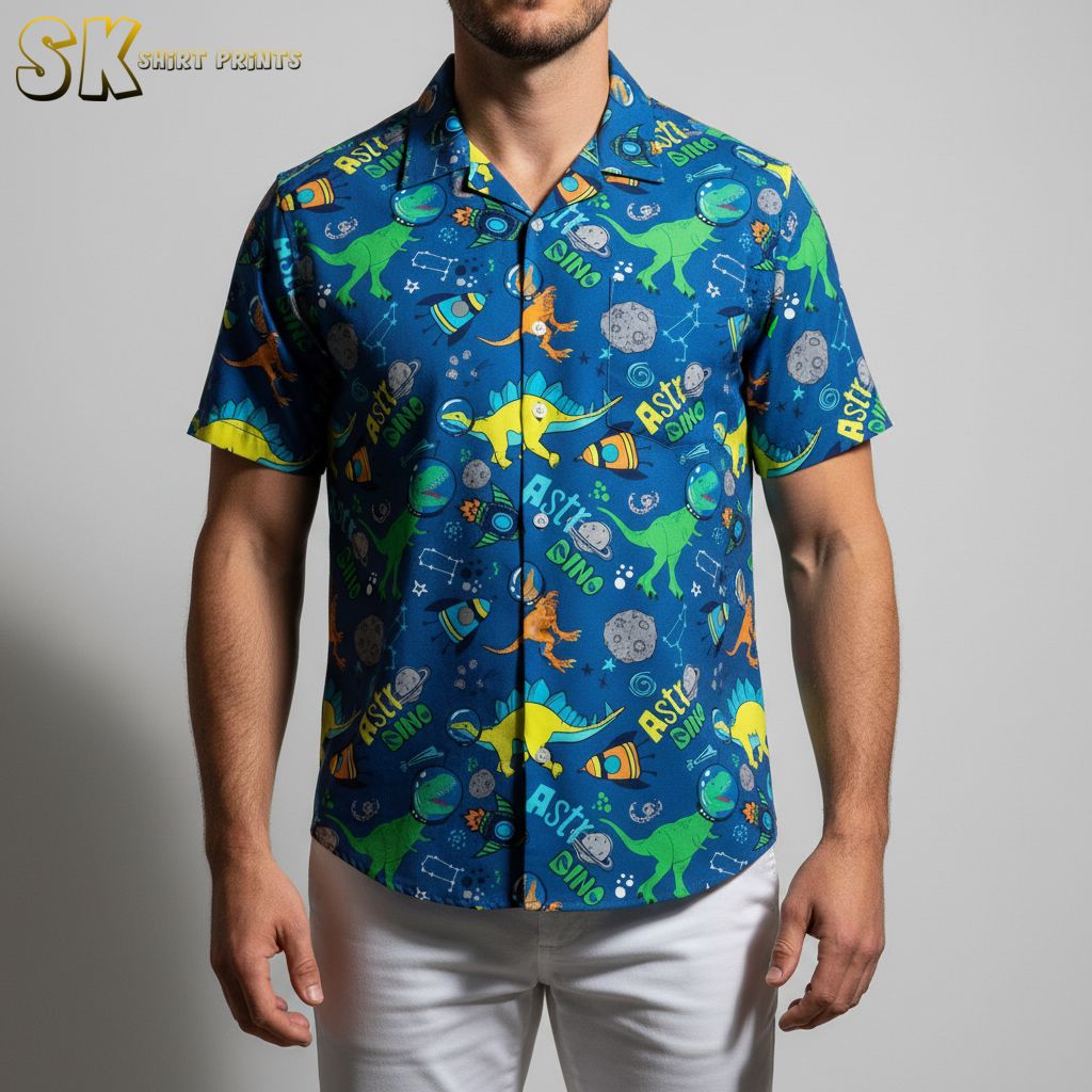 Prehistoric Dino Print Hawaiian Button Up Shirt for Men – Tropical Dinosaur Design