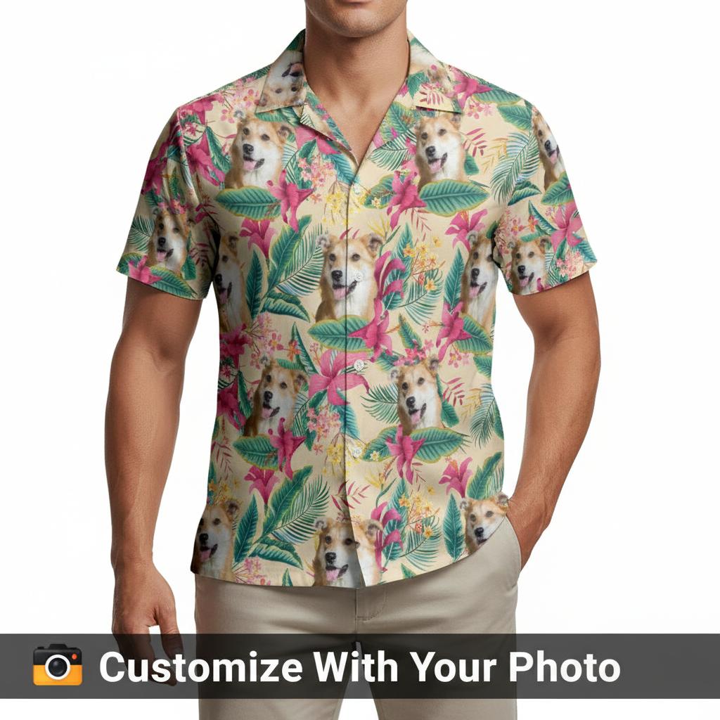 OMG this custom dog face Hawaiian shirt is absolutely PERFECT! I ordered it with my Golden Retriever Bailey’s photo for my husband’s birthday and he literally cried happy tears when he opened it. The print quality is insane – you can see every single whisker and the detail in Bailey’s eyes. We’ve washed it 4 times already and the colors are still super vibrant, no fading at all. He wore it to our family BBQ last weekend and literally everyone asked where he got it. Already ordered matching ones for our whole family! The personalized pet face shirt arrived in 8 days which was faster than expected. Customer service was amazing when I had questions about photo quality. This is hands down the best custom Hawaiian shirt I’ve ever seen. 100% recommend if you love your dog as much as we do! Worth every penny.
