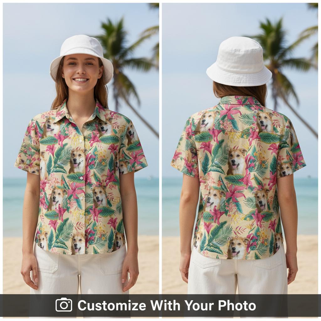 Dog Face Hawaiian Shirt - Green Yellow Custom Pet Photo Print