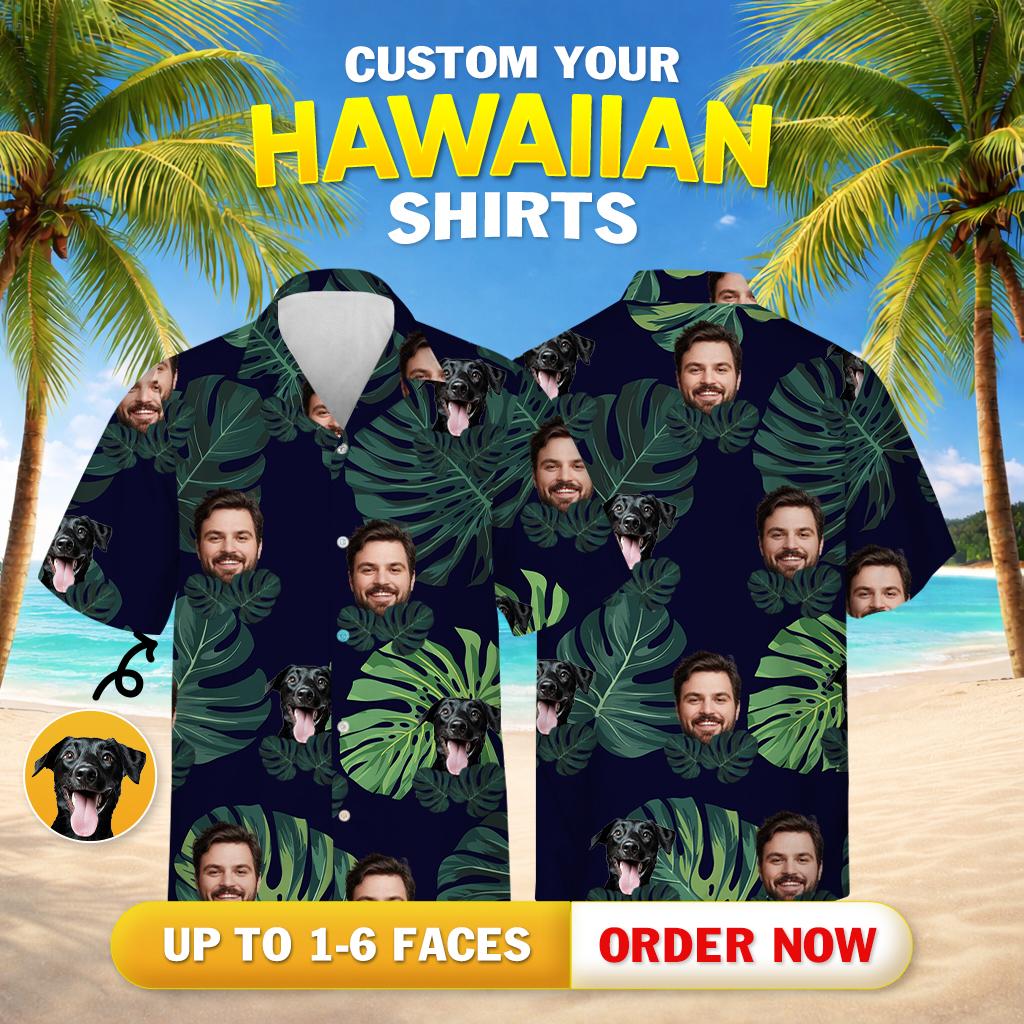Creating your shirt is easy and fun. Simply upload up to six photos: your dog, your favorite people, or even a business logo. Our talented artists then cut out and arrange the faces in a repeating pattern, seamlessly blending them among tropical leaves. As a result, every shirt is entirely yours, unlike anything you’ll find in a store. This makes our dog on Hawaiian shirt a brilliant choice for group vacations, quirky family portraits, or heartfelt gifts for dog lovers. Plus, preview your unique pattern before production for total peace of mind.