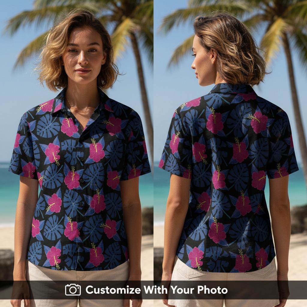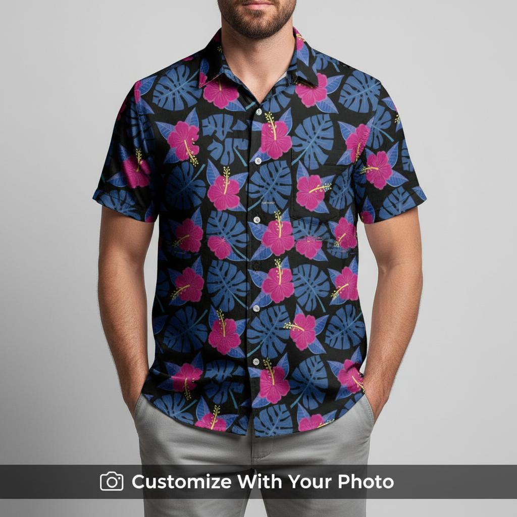 Floral Hawaiian Shirt Custom Photo Print - Tropical Beach Party Tee