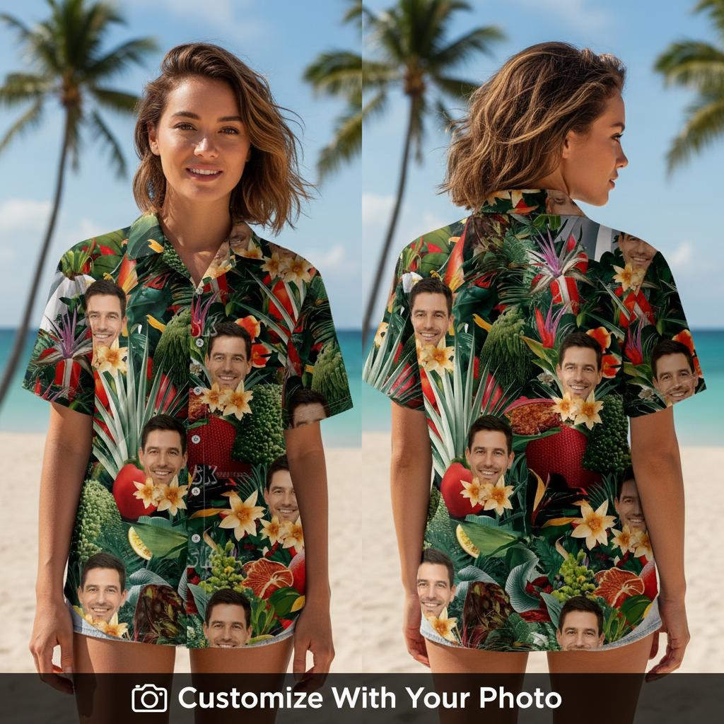 Fruit Hawaiian Shirt Custom Face Print – Tropical Food Pattern Men’s Shirt