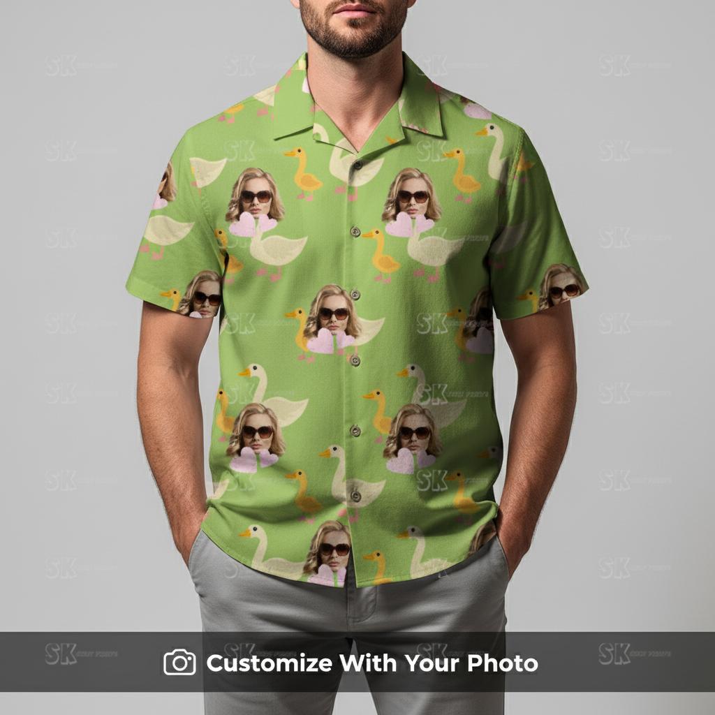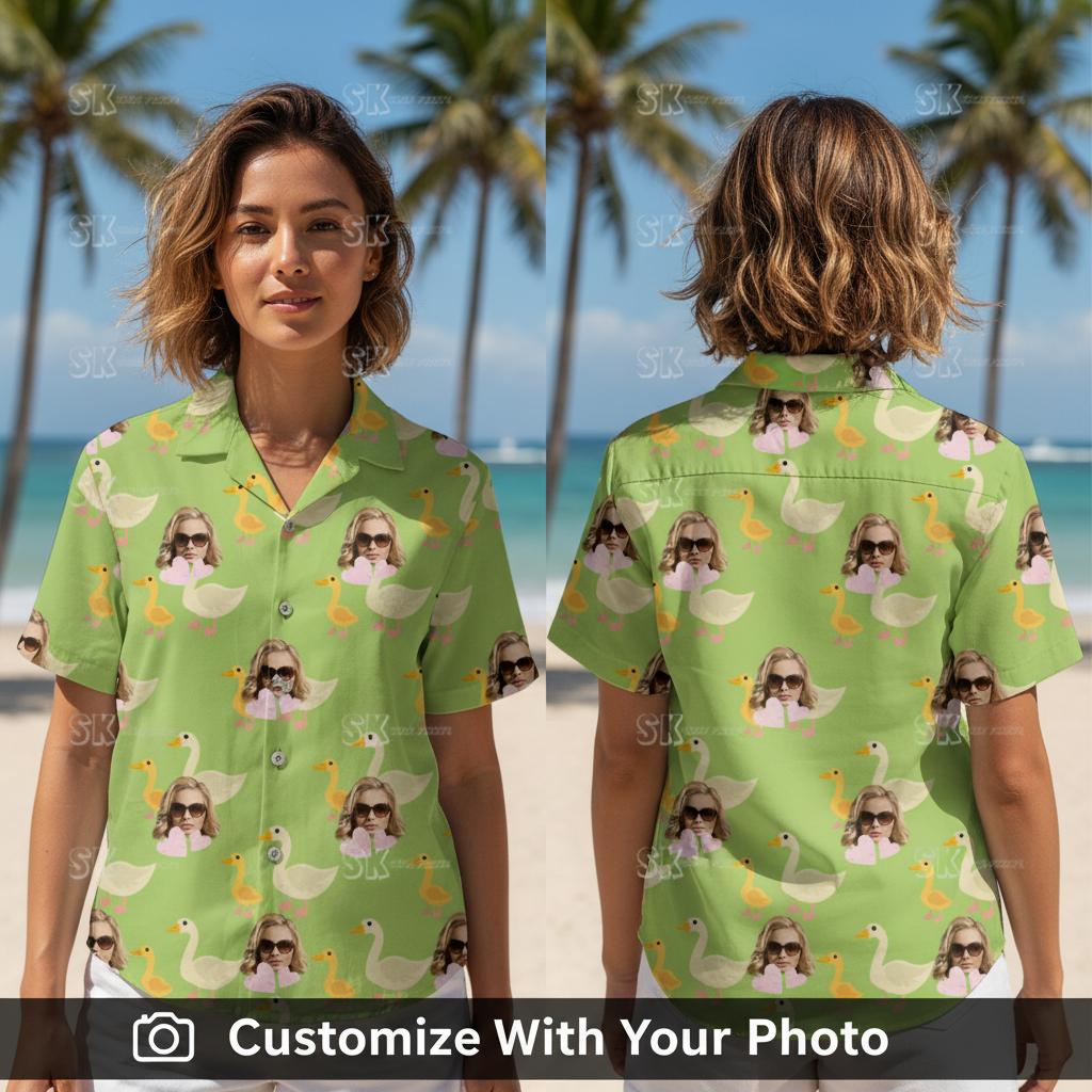Funny Hawaiian Shirts Women - Ducks in Sunglasses on Green Background