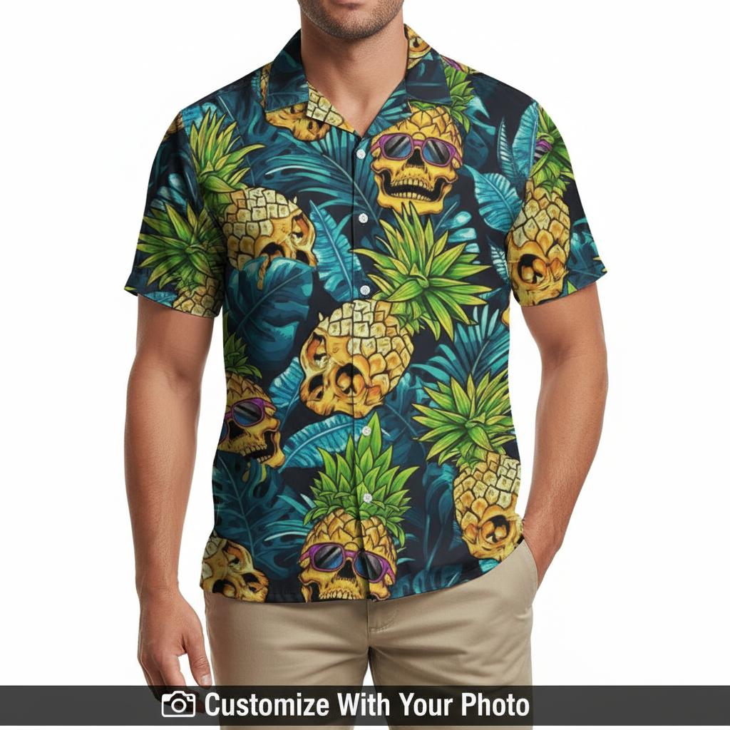 Skull Hawaiian Shirt Custom Photo Print – Pineapple Death Head Beach Shirt
