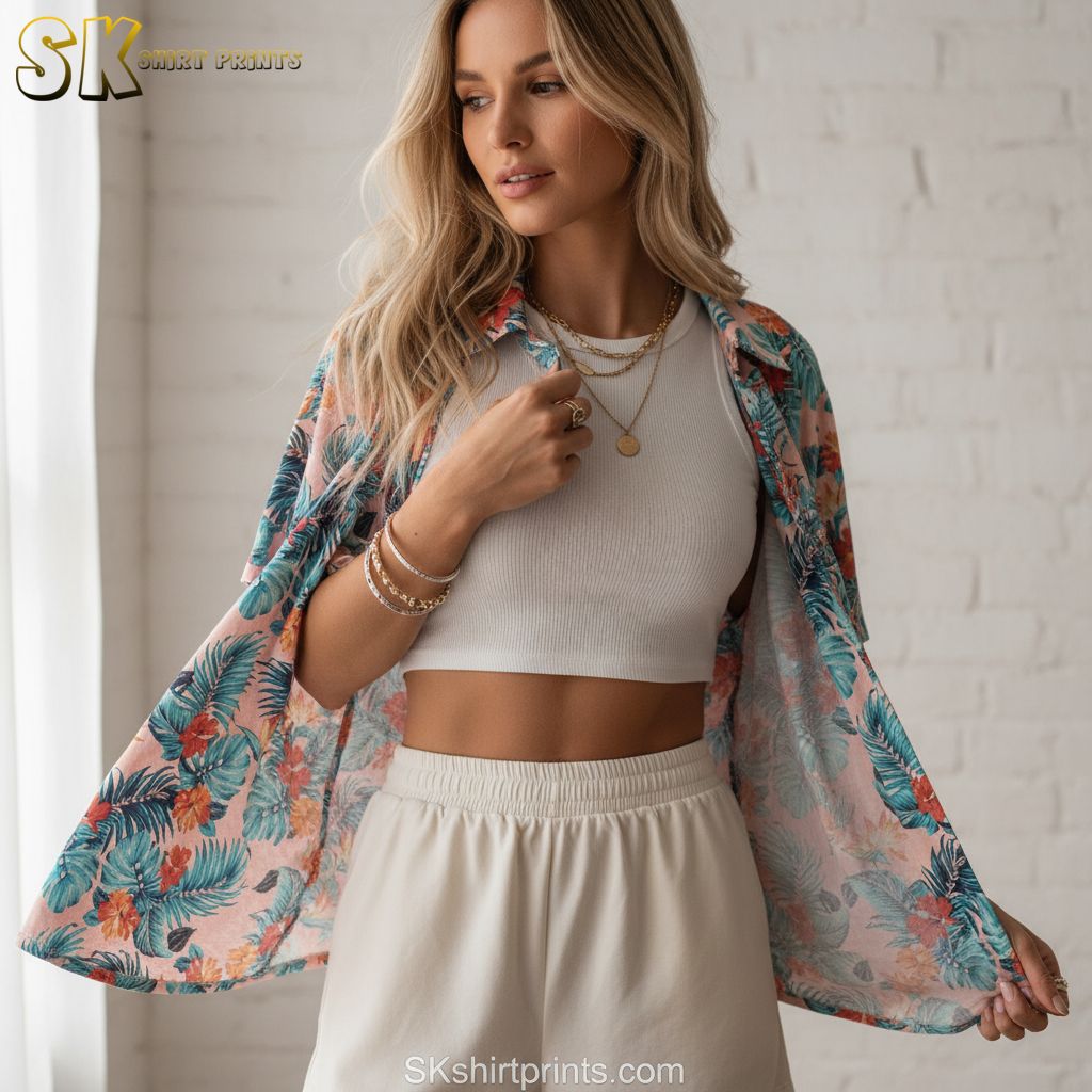 All-over print from collar to hem. Every detail sharp and vivid.