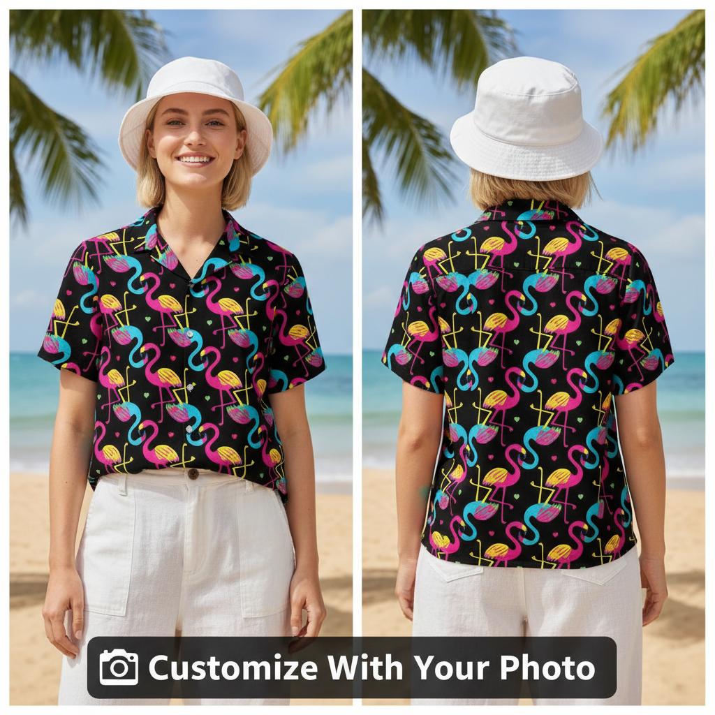 Custom Photo Flamingo Hawaiian Shirt – Pink Blue Tropical Bird Pattern