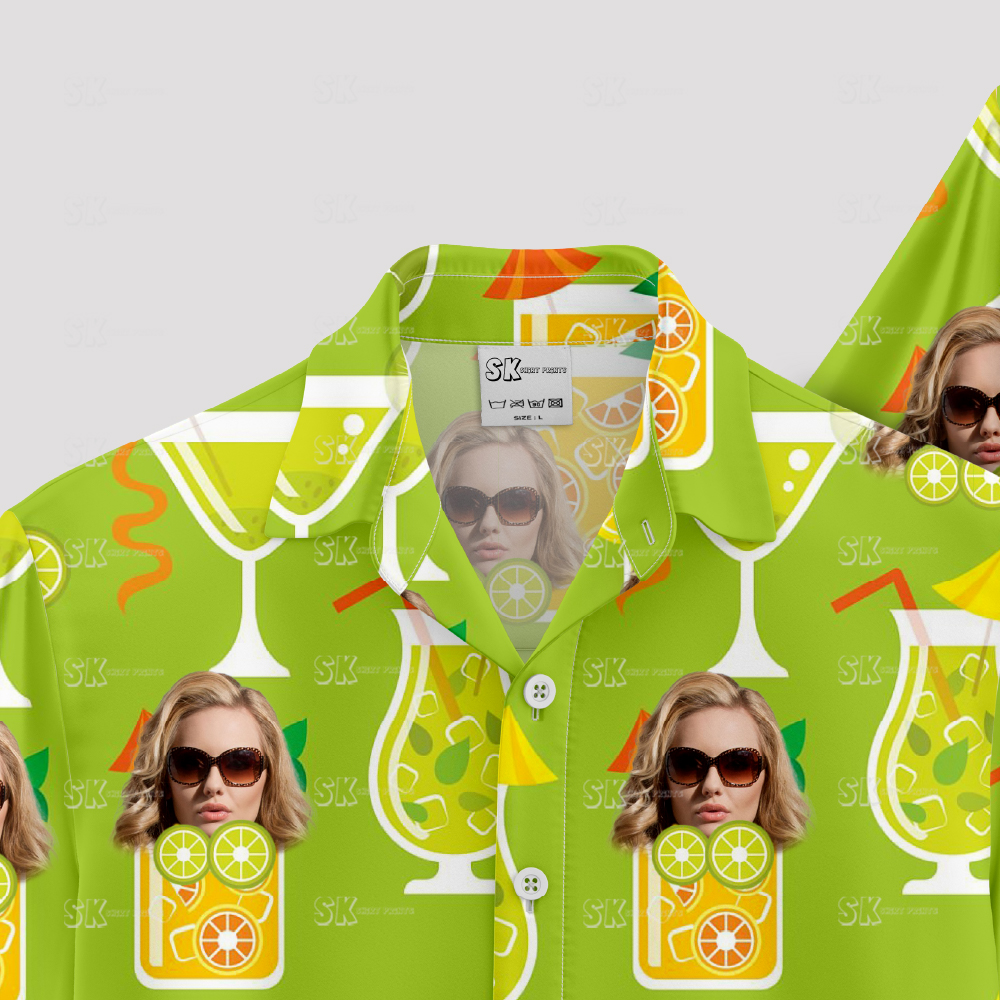 A green hawaiian shirt is more than just summer fun – it’s a way to stand out, show your style, and make lasting memories! Our personalized Hawaiian shirts are printed with YOUR photos and finished with a cheerful cocktail, sunglasses, and tropical drinks pattern. Imagine bringing laughter to your next BBQ, birthday, or family trip with a shirt that shows faces you love.