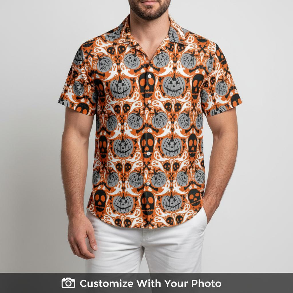 Halloween Hawaiian Shirt — Spooky Ghosts, Pumpkins & Skulls Design