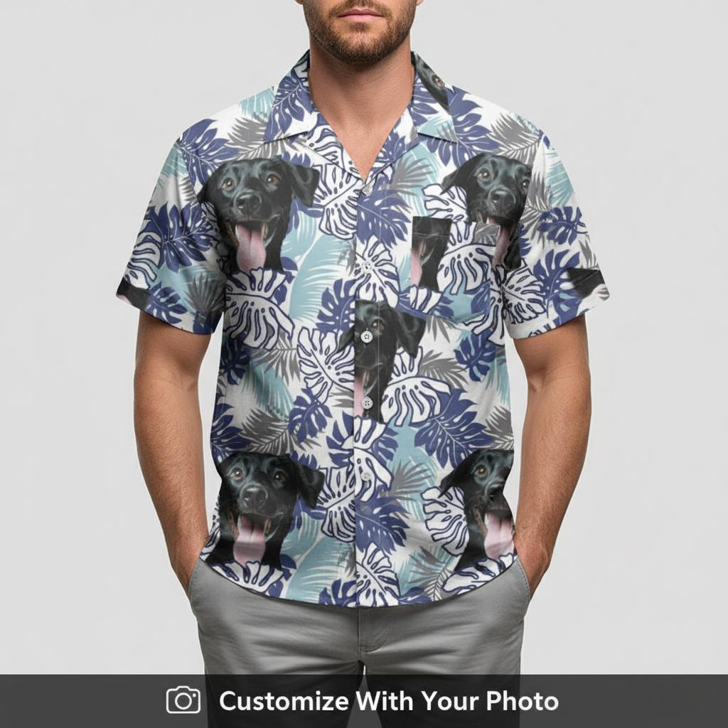 Custom Dog Face Hawaiian Shirt – Your Pup All Over Tropical Leaves