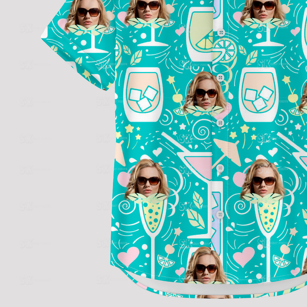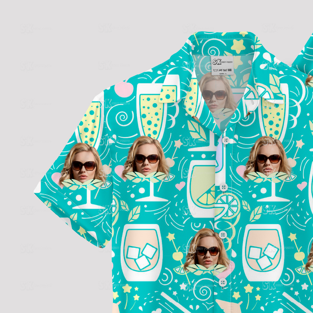 Make this summer truly unforgettable. Order your hawaiian shirt women outfit with a cocktail-inspired design and your own special faces. Experience the best in personalized fashion—tropical, vibrant, and uniquely you!