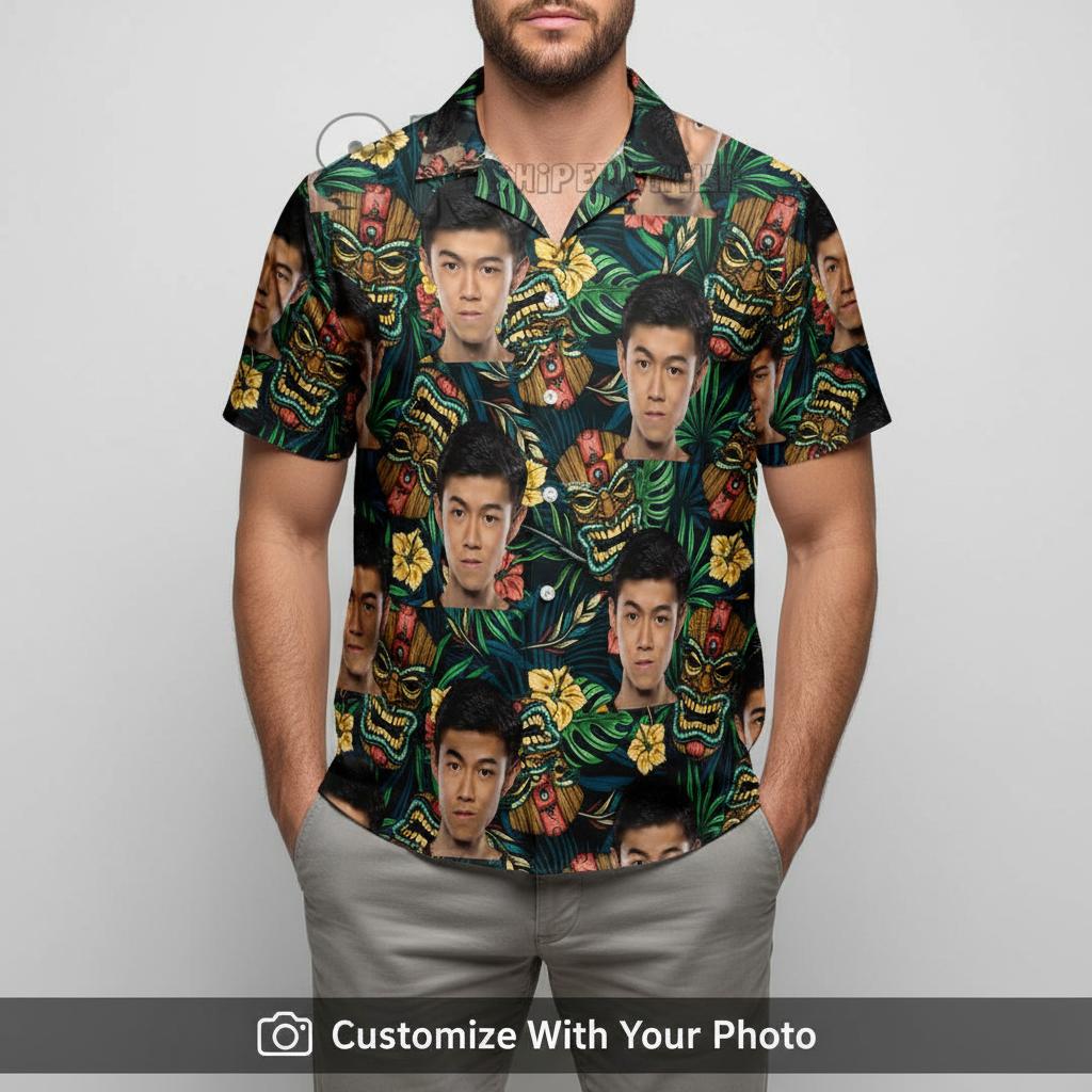 Hawaiian Shirts With Faces Tiki Mask Tropical Floral Custom Photo Print