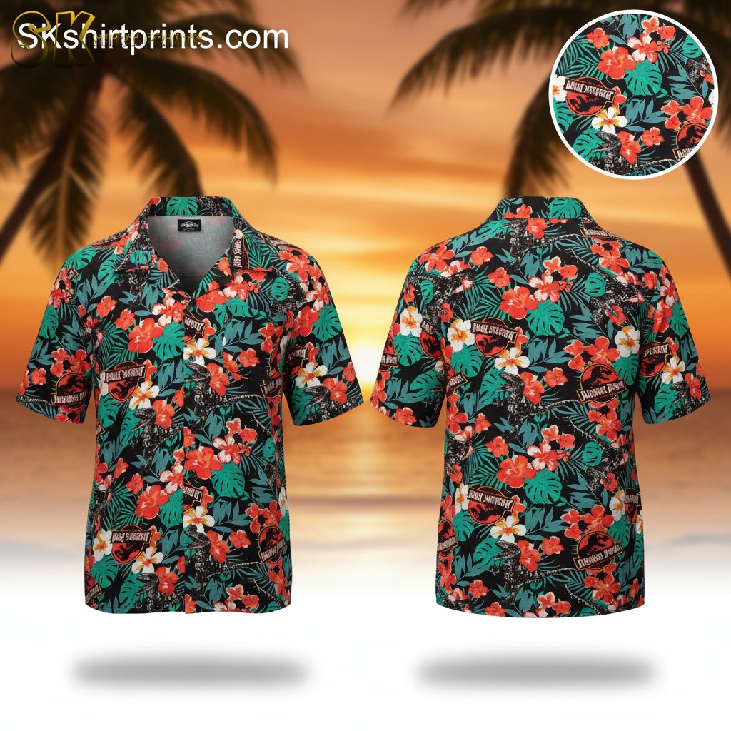 Jurassic Park Dinosaur Hawaiian Shirt Men’s Button Down T-Rex Print Tropical Shirt