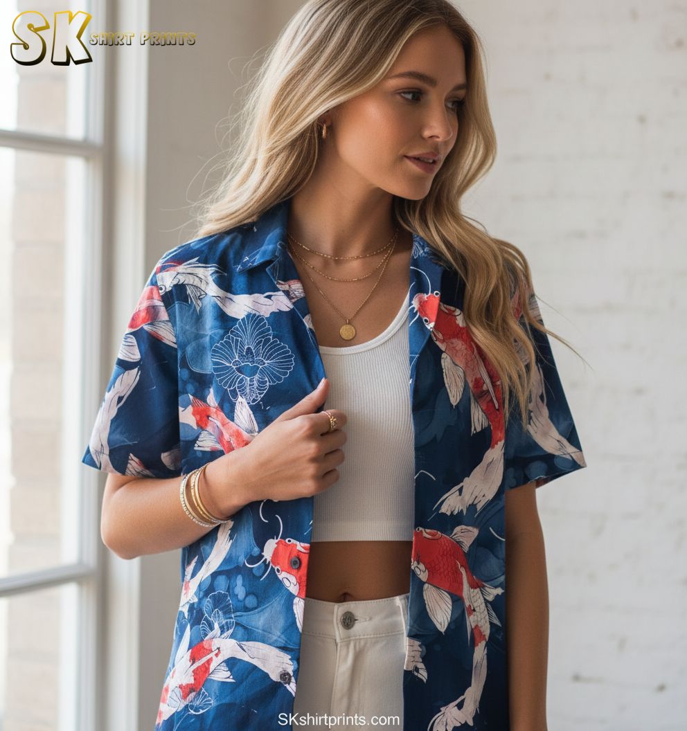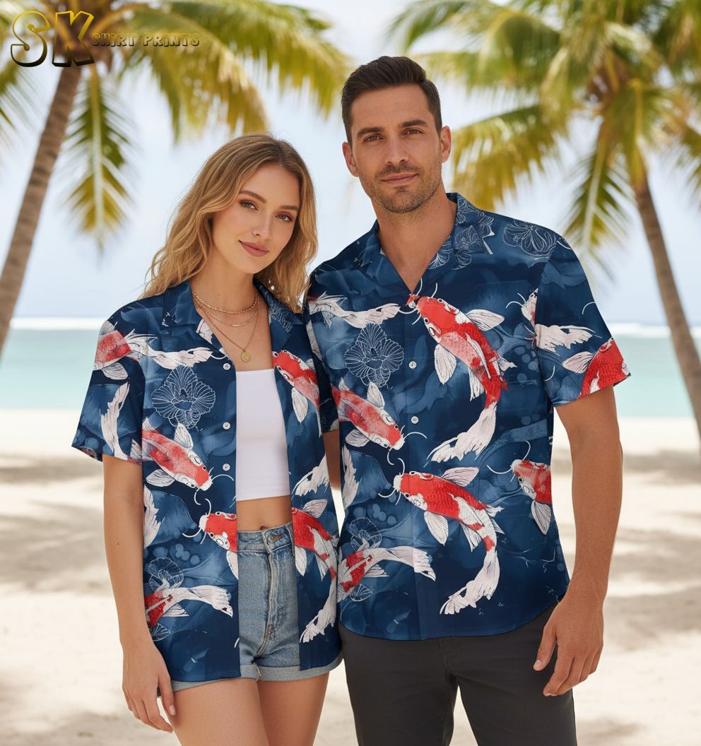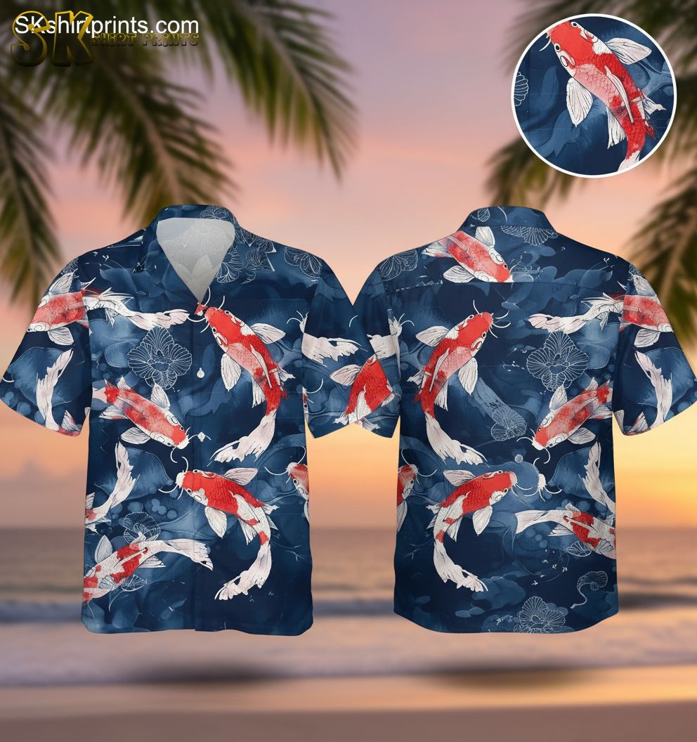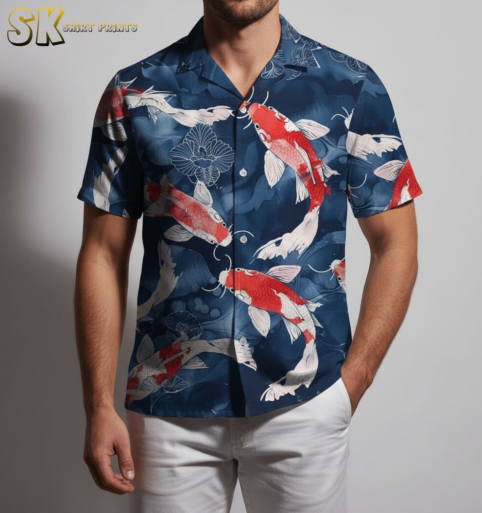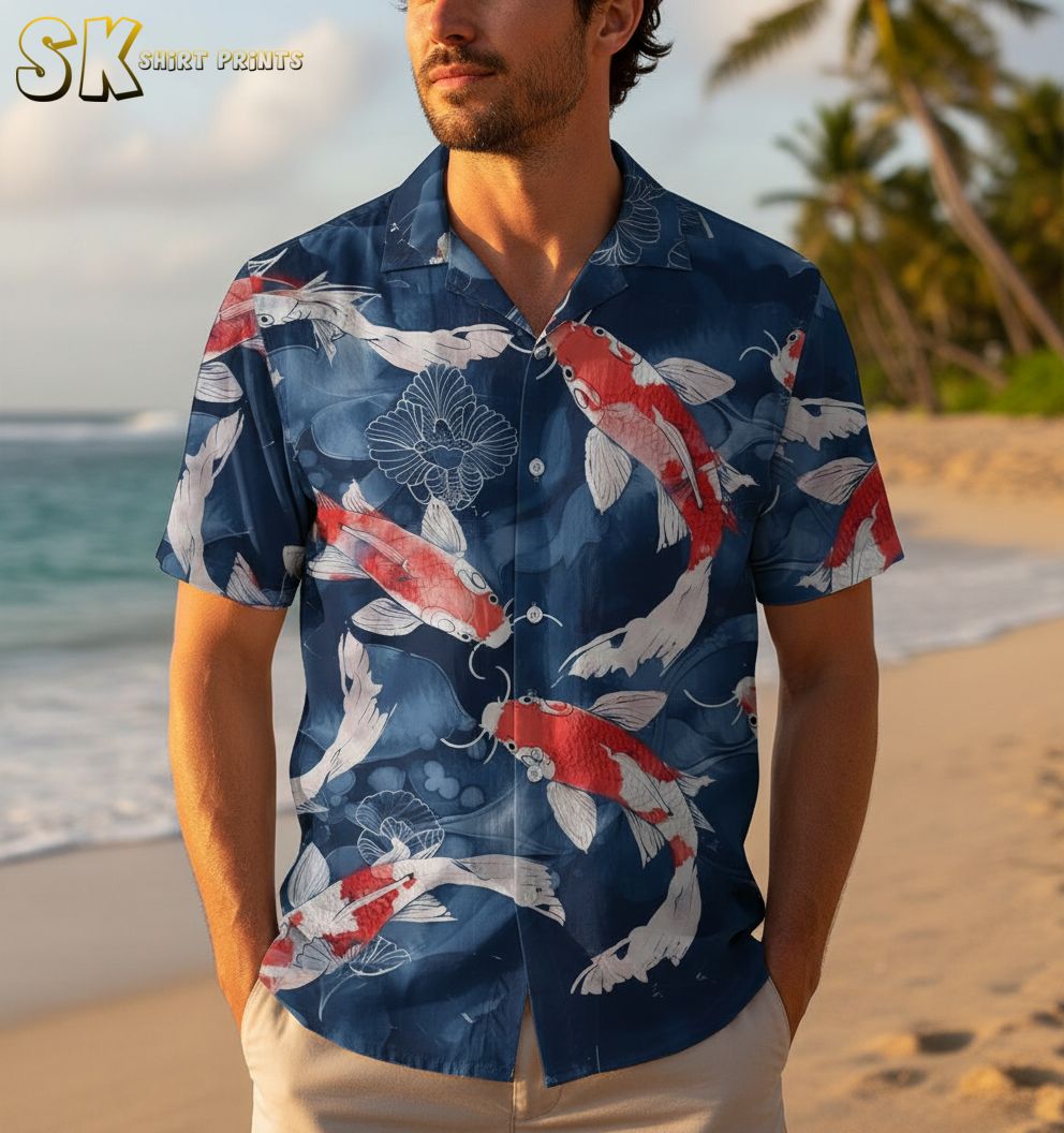 Koi Fish Hawaiian Shirt for Men – Japanese Carp Short Sleeve Button Down Beach Aloha Shirt