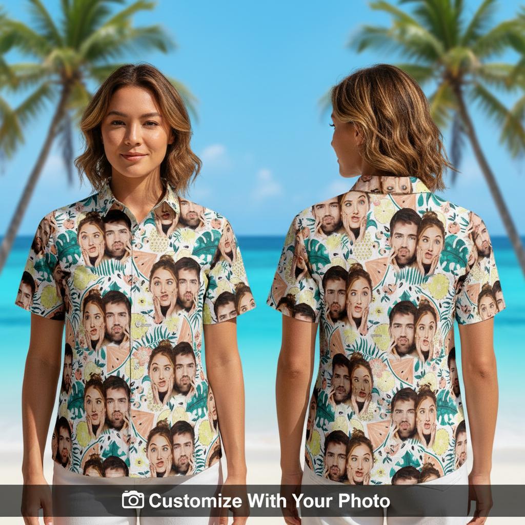 Matching Hawaiian Shirts for Couples - Custom Photo Tropical Outfits