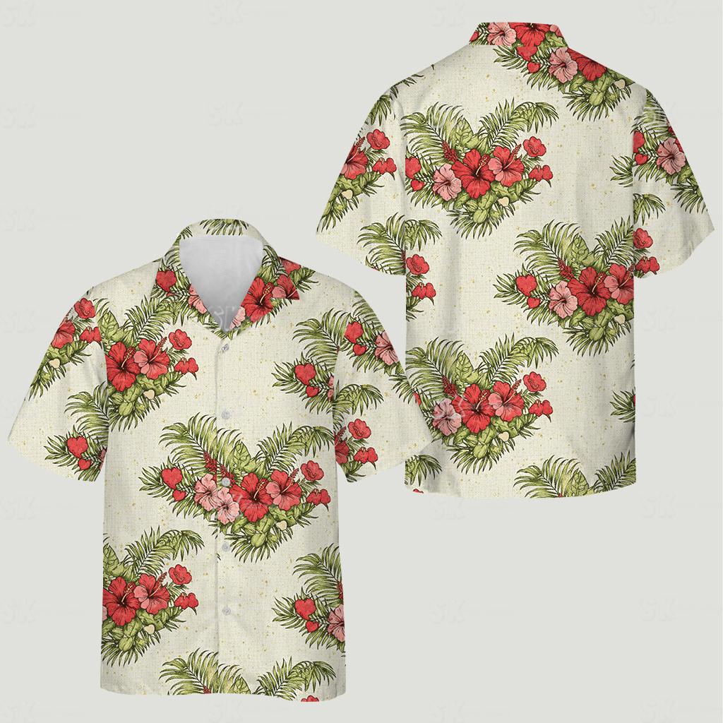 Show off your unique bond with SK Shirt Prints’ matching tropical outfits for couples. Each shirt features big, bold red hibiscus flowers paired with lush green leaves, all set against a fresh, light background. Moreover, you can add playful illustrations of your own faces wearing sunglasses, elevating the fun and making every design one-of-a-kind. This vibrant mix turns heads at any beach party, luau, or vacation!