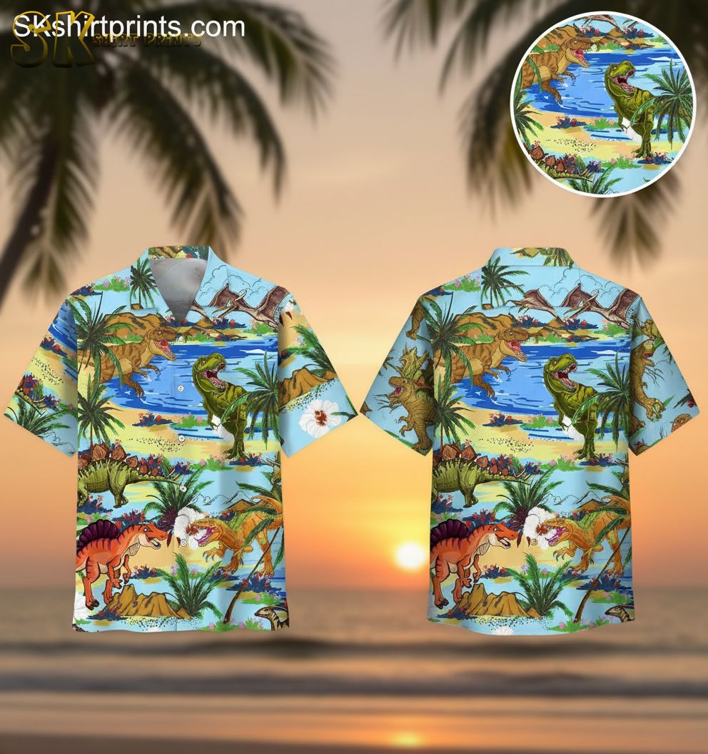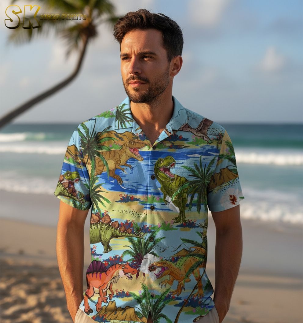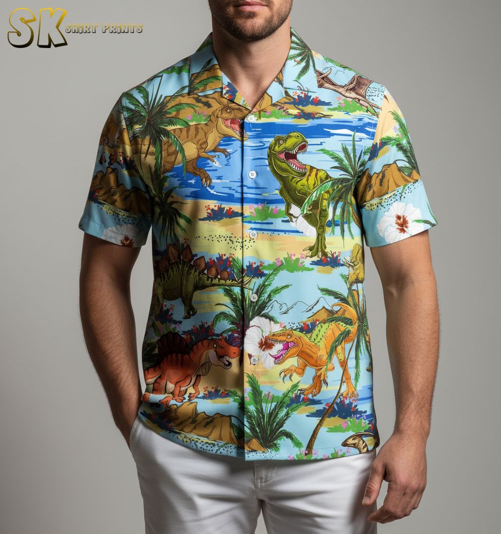 Dinosaur Hawaiian Shirt Men Short Sleeve Button Down Jurassic Print Shirt for Adults