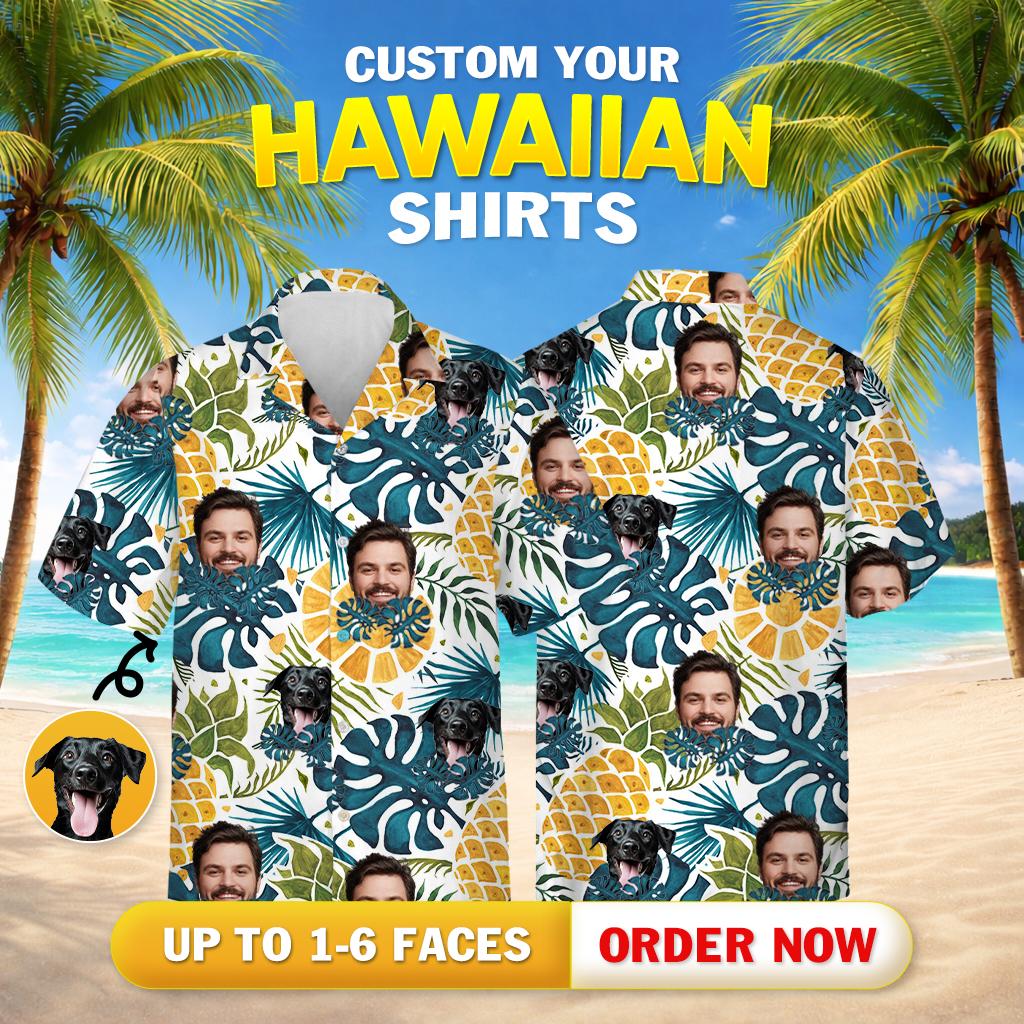 Mens funny Hawaiian shirts with your pet or face make every party unforgettable and uniquely yours