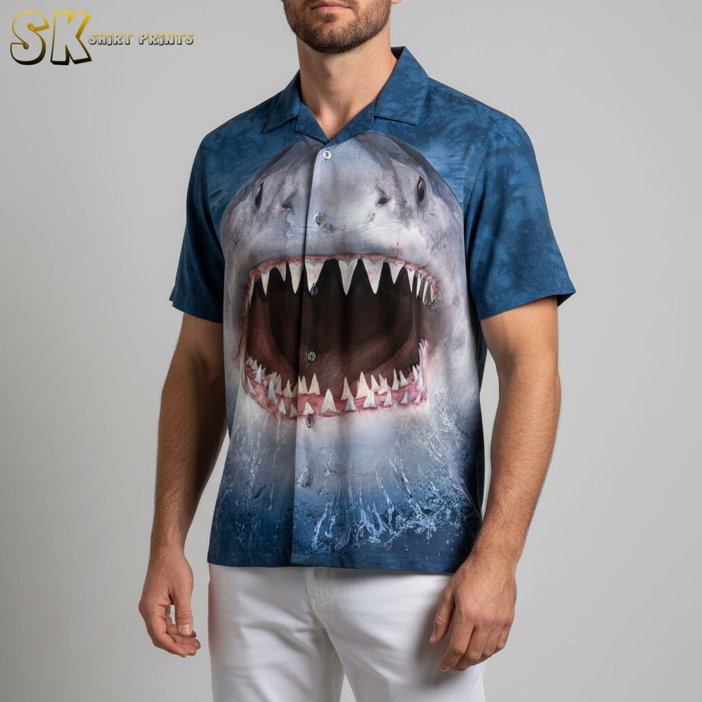 Men’s Hawaiian Shark T-Shirt – Tropical Great White Sharks Design Short Sleeve Tee