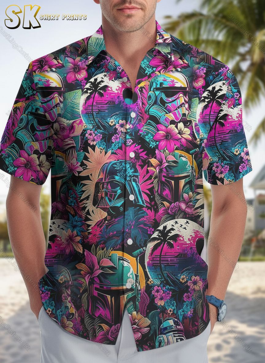 Men’s Star Wars Hawaiian Shirt – Tropical Button Down for Beach Vacation and Summer Adventures