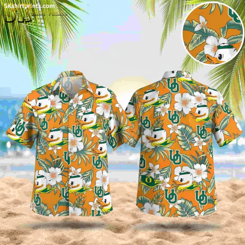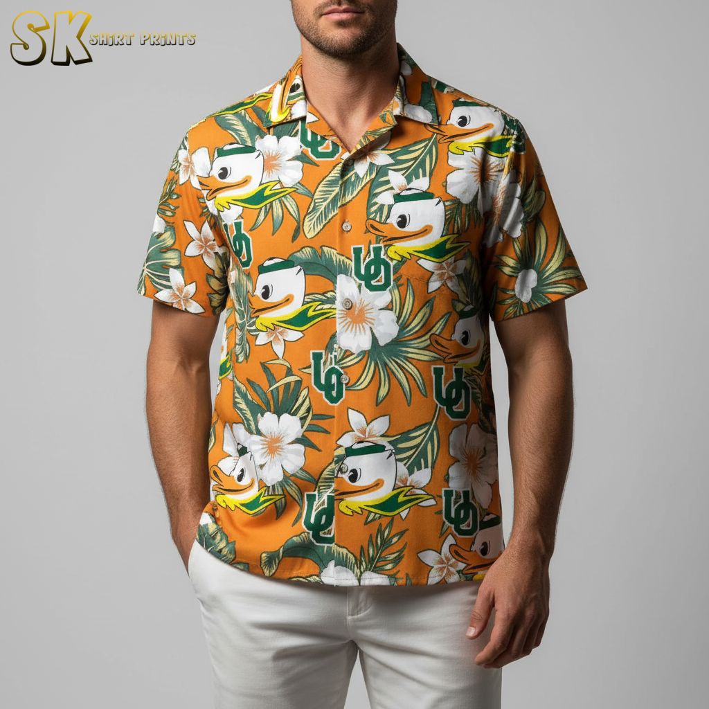 Oregon Ducks Hawaiian Shirt – Tropical Duck Mascot Print Button Front Shirt for Men