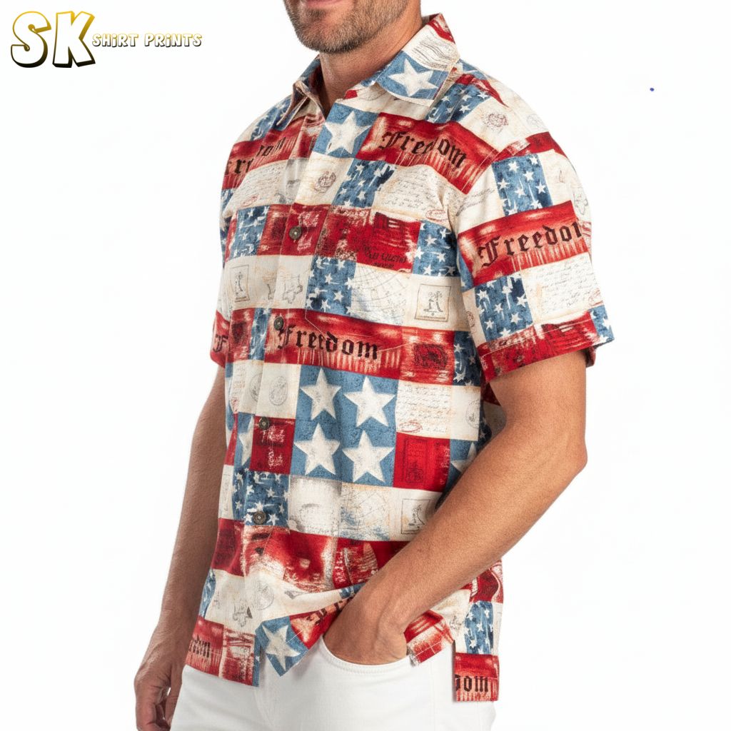 Patriotic Hawaiian Shirt – American Flag Aloha Shirt for Beach Vacation and Summer Parties