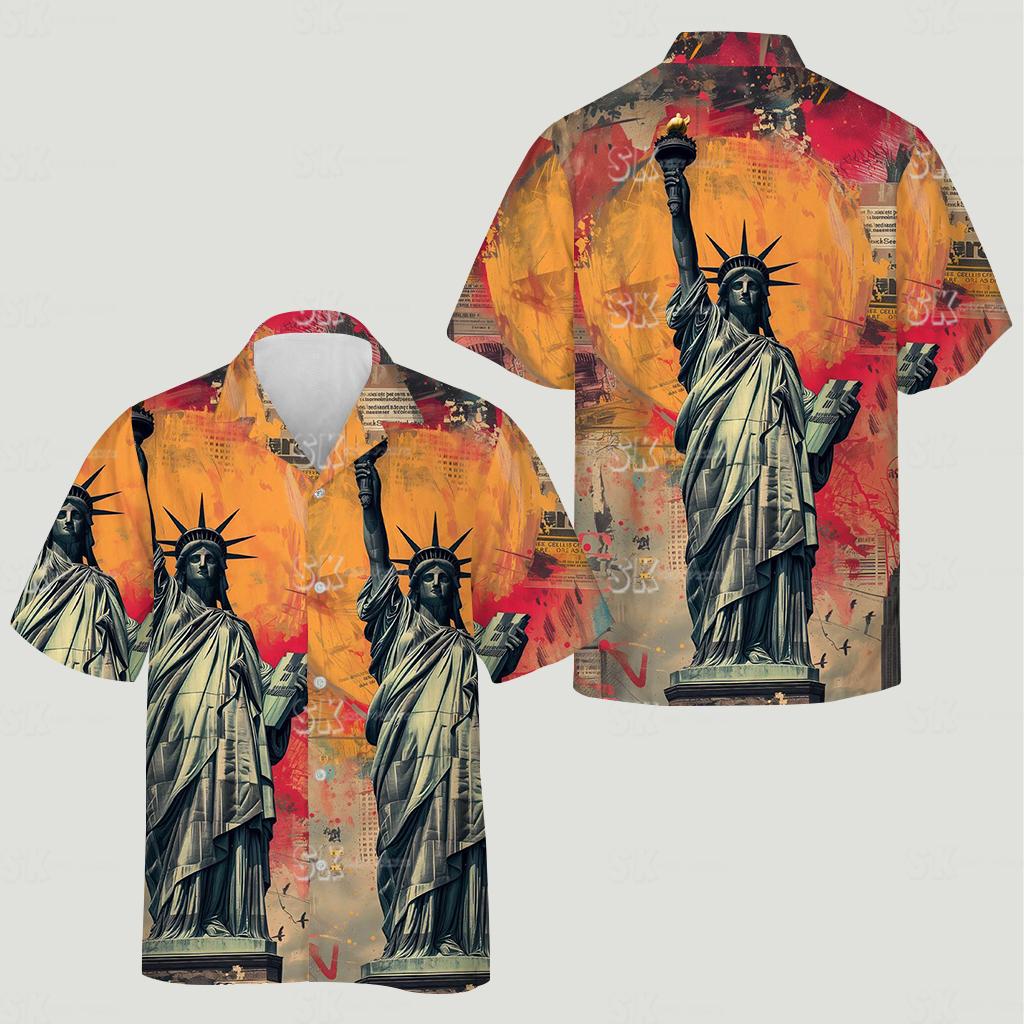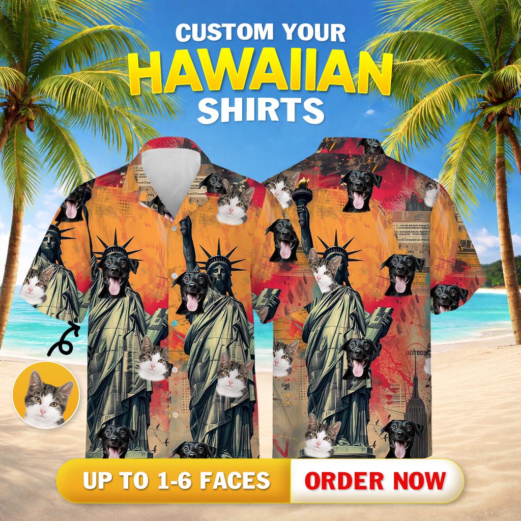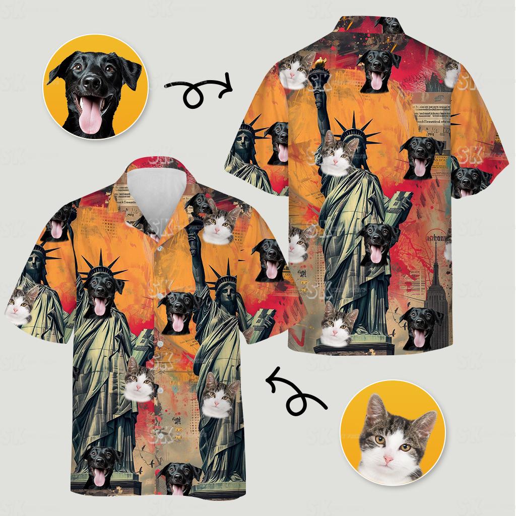Patriotic Hawaiian Shirt Custom Photo Print Statue Liberty