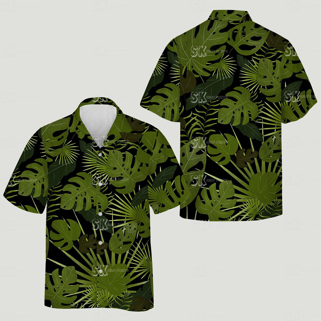 Personalized Cat Hawaiian Shirt Tropical Leaves Design