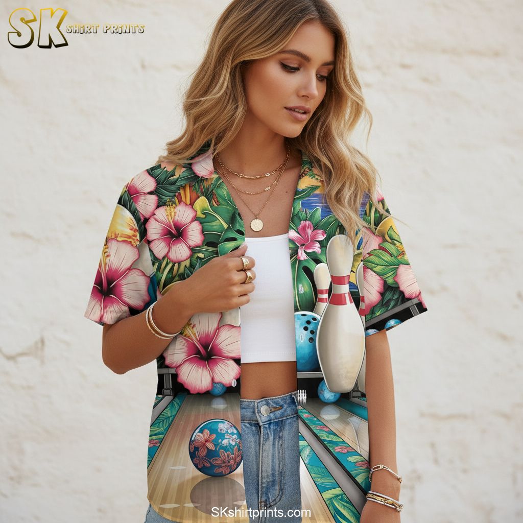 Personalized Tropical Hawaiian Bowling Shirt – Custom Short Sleeve Button Down for Men & Women Bowlers