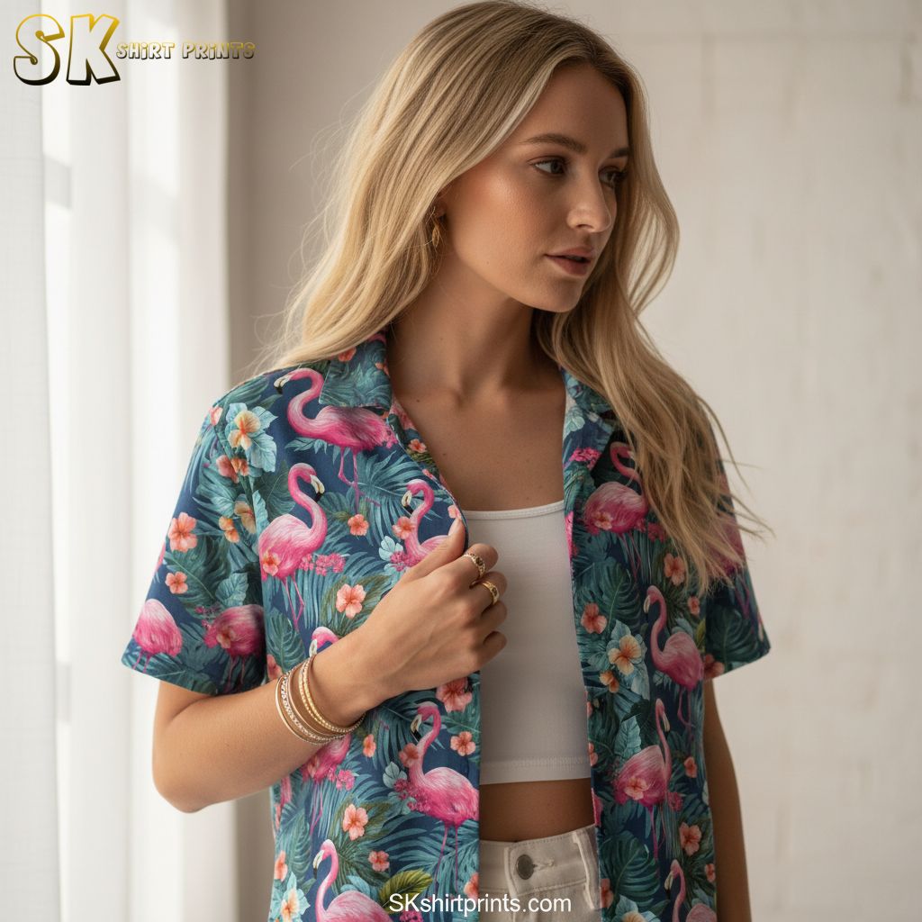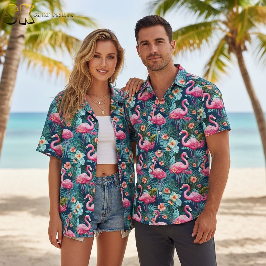 Pink Flamingo Hawaiian Shirt Casual Button Down Short Sleeve – Tropical Aloha Shirt for Men Women