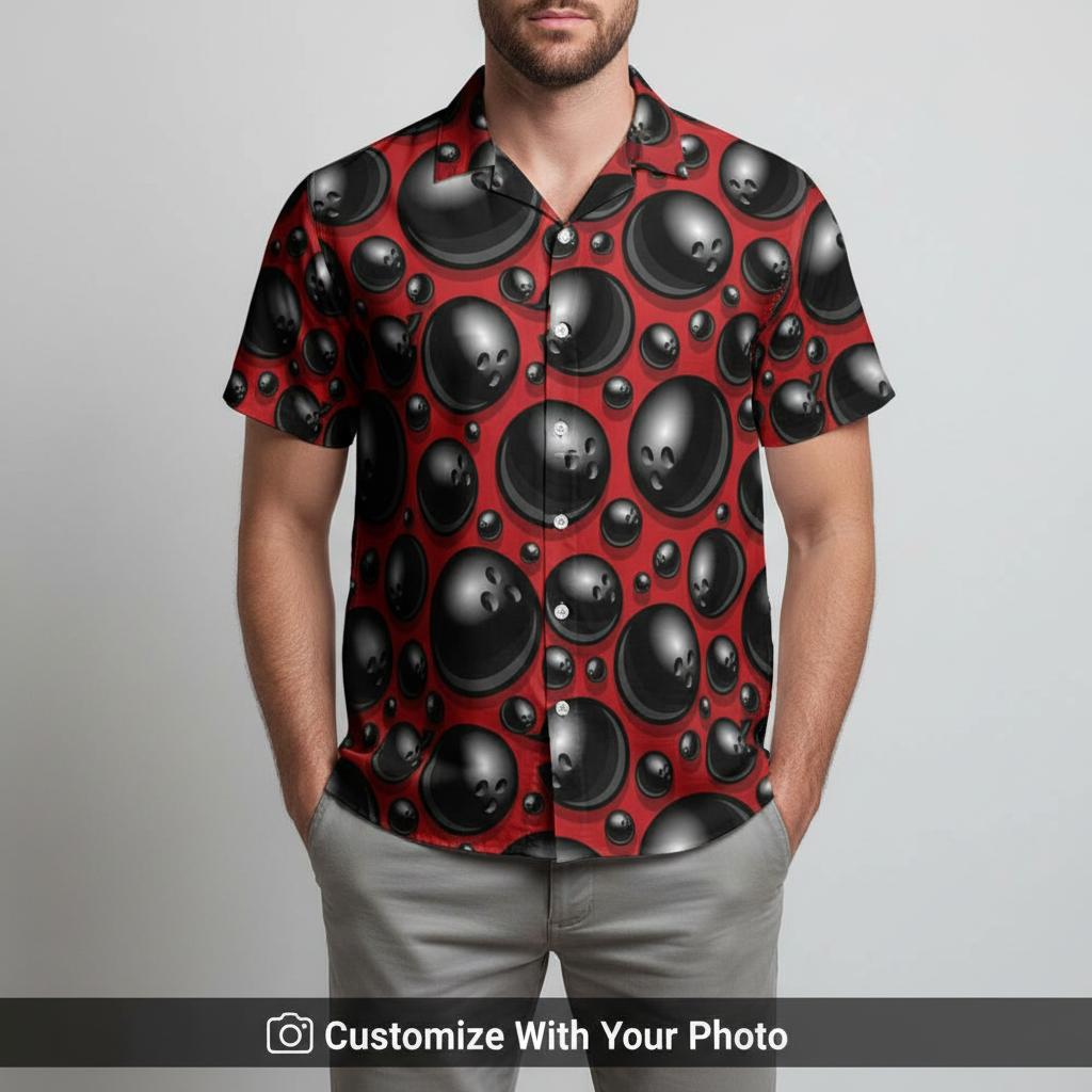 Red Black Bowling Hawaiian Shirts with Custom Photo Upload Design