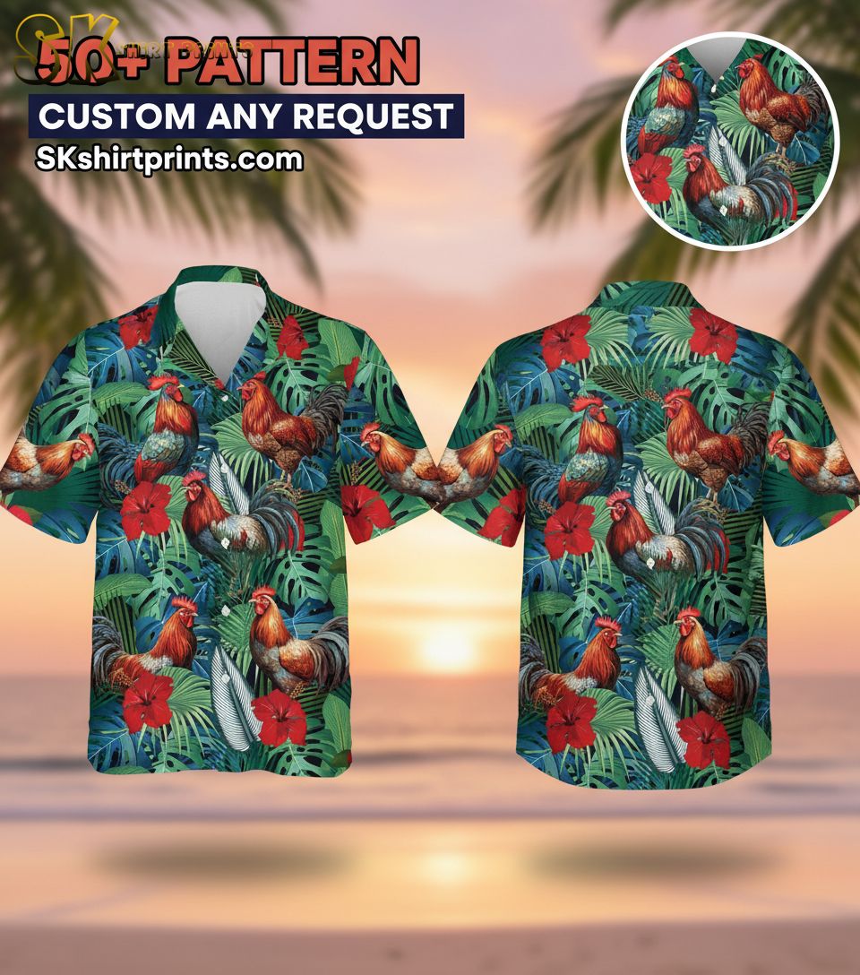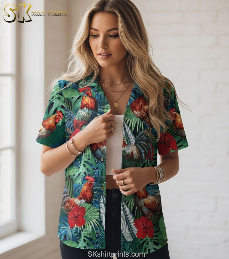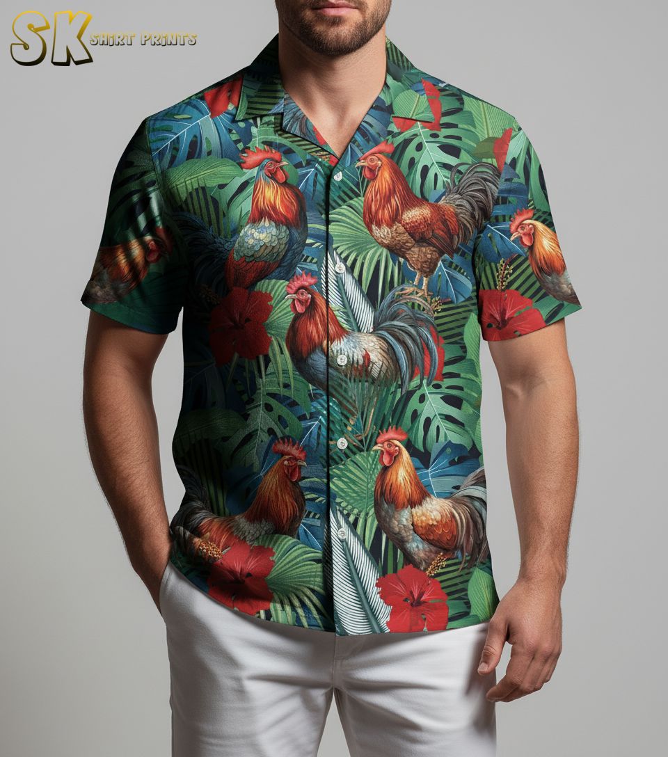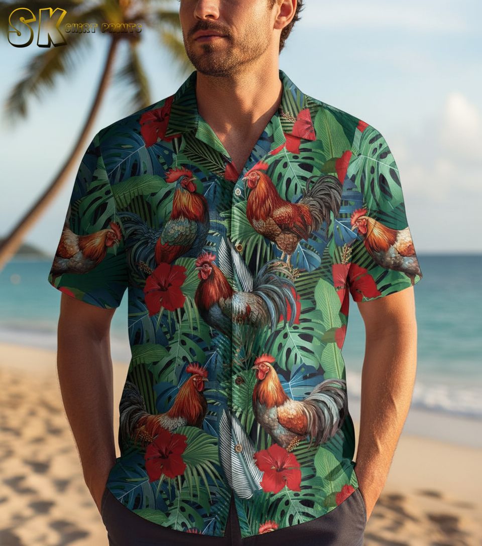 Rooster Hawaiian Shirt – Top Gun Inspired Button Down Short Sleeve Tropical Beach Vacation Shirt