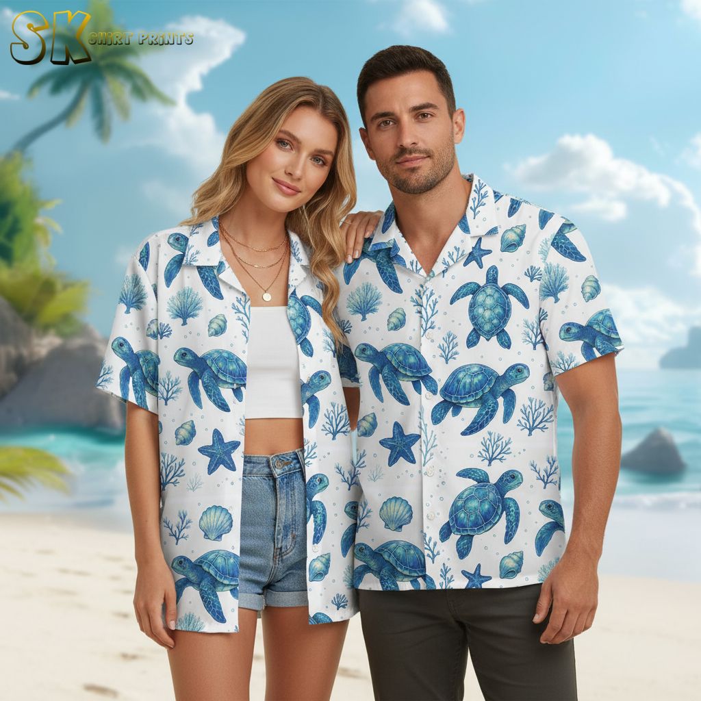 Sea Turtle Hawaiian Shirt for Men Women – Ocean Beach Button Down Short Sleeve Aloha Shirt Summer Vacation