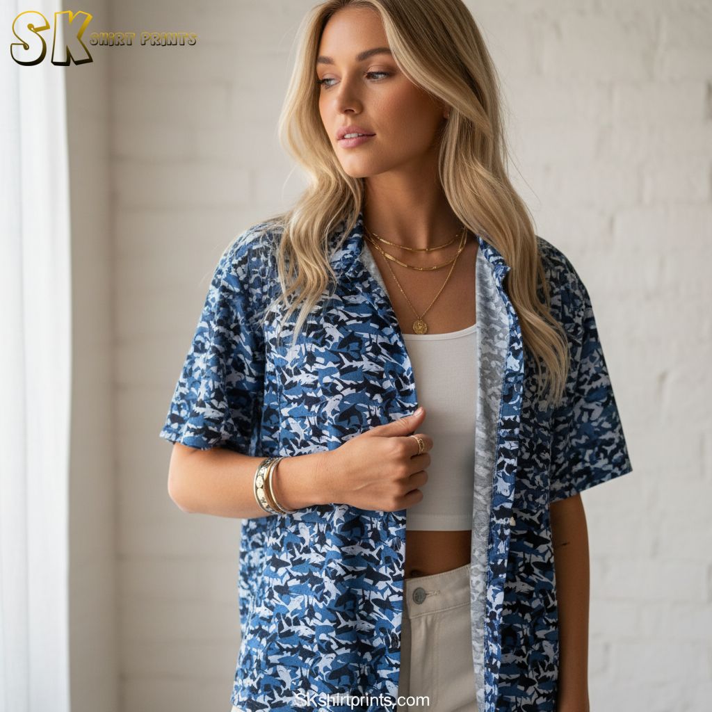 Shark Attack Hawaiian Shirt – Ocean Predator Aloha Button Down for Men Women Summer Beach