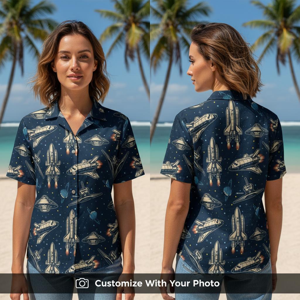 Spaceship Hawaiian Shirt Custom Photo Print UFO Galaxy Design Men Women