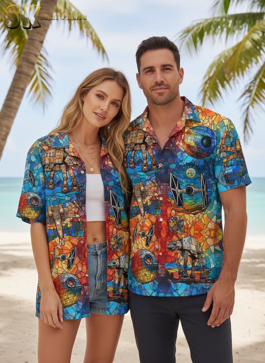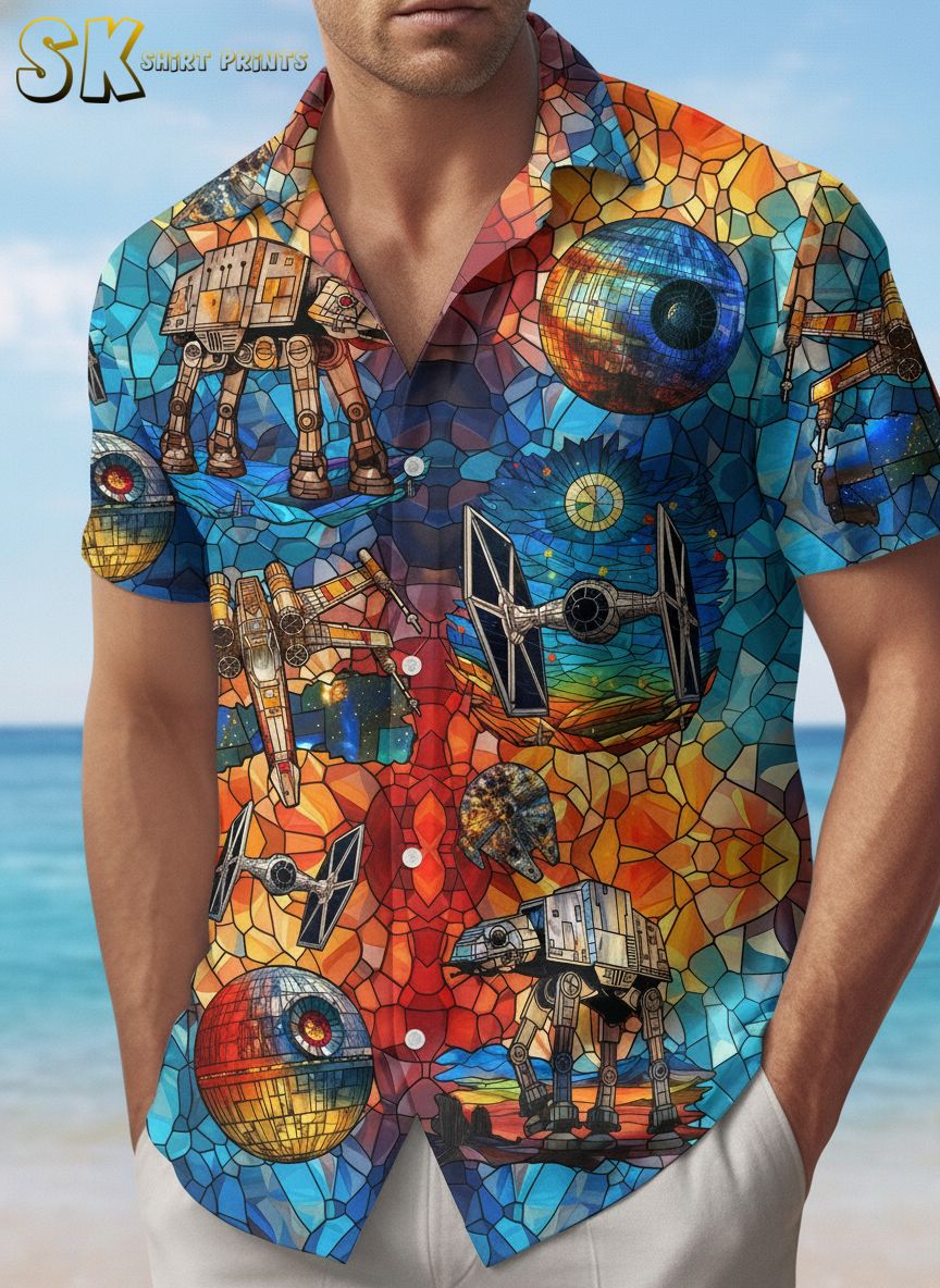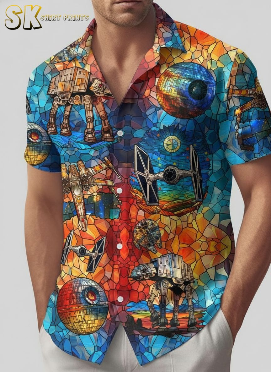 Star Wars Hawaiian Shirt Mens – Tropical Galaxy All-Over Print Button Down for Beach Vacation
