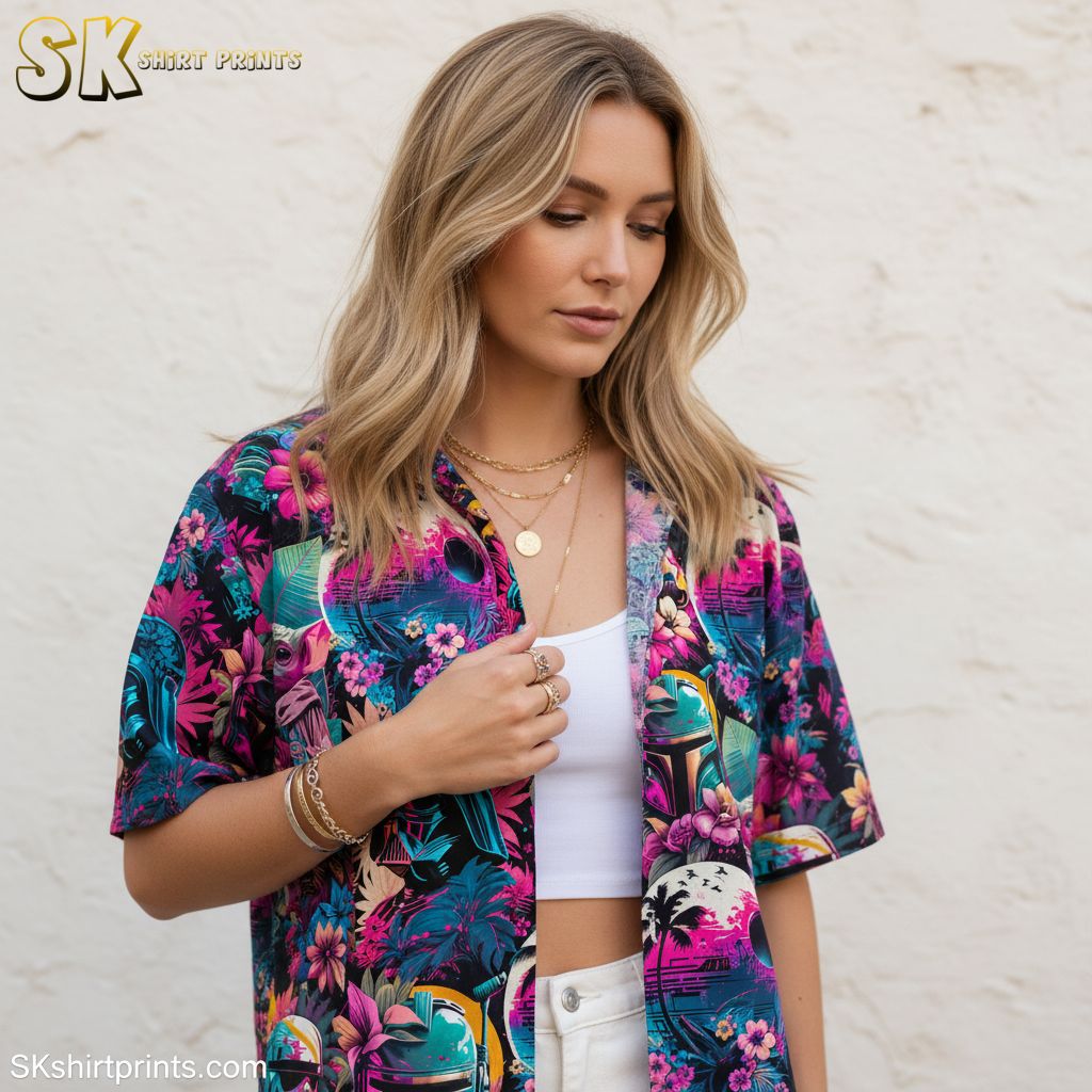 Star Wars Hawaiian Shirt with Tropical Flowers – Darth Vader Boba Fett Storm Trooper Beach Vacation Shirt