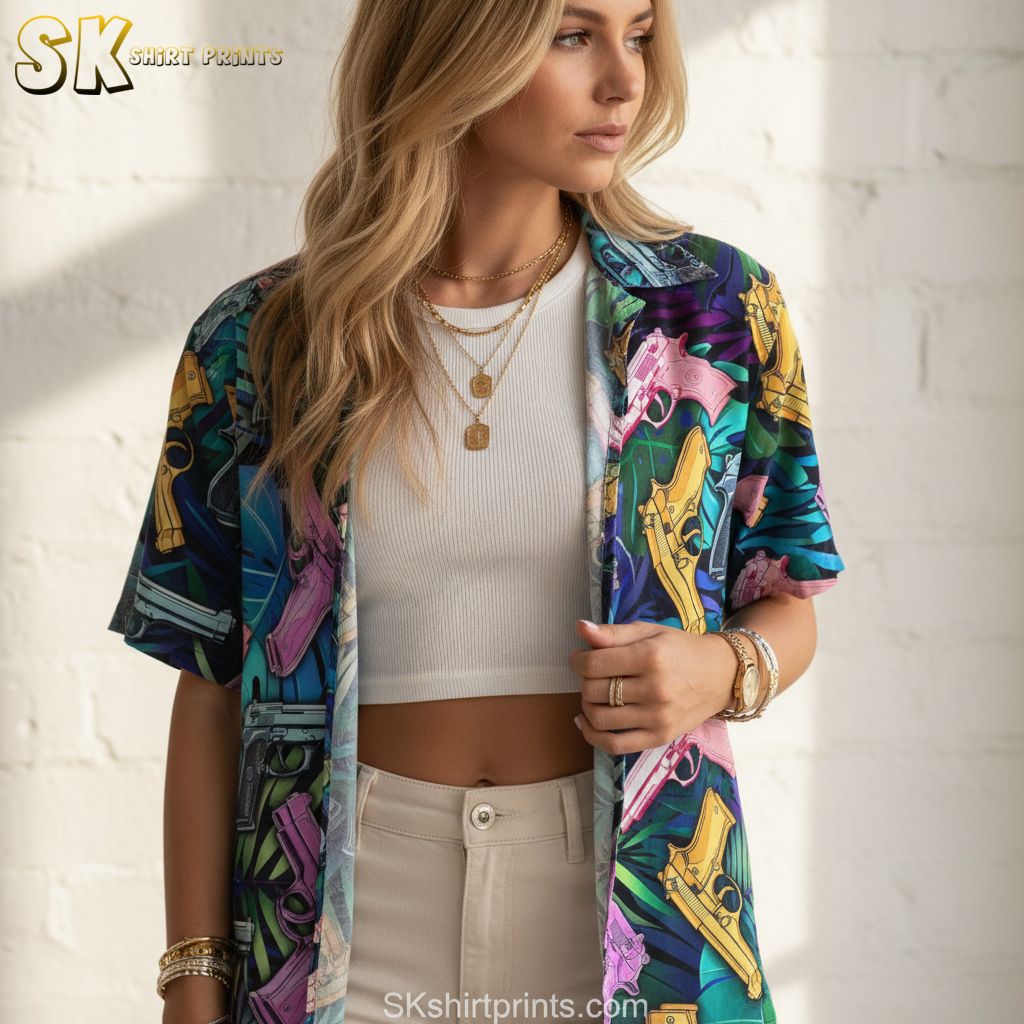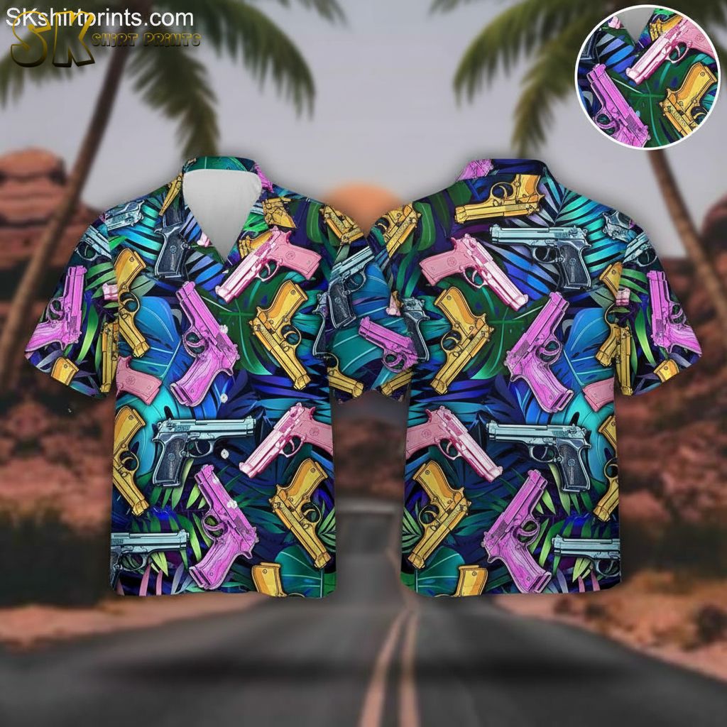 Tactical Gun Hawaiian Shirt for Men – Military Weapons Button Down Beach Shirt Short Sleeve