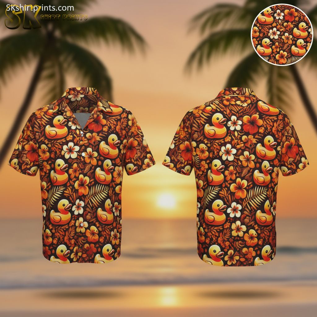Tropical Paradise Rubber Ducky Hawaiian Shirt for Men with Button Down Design